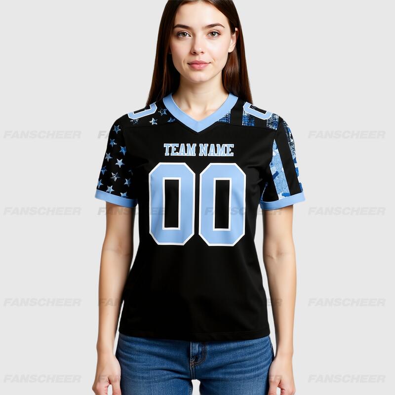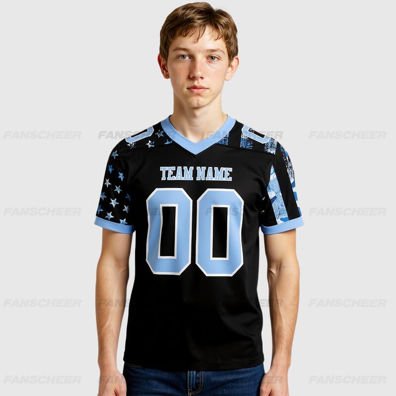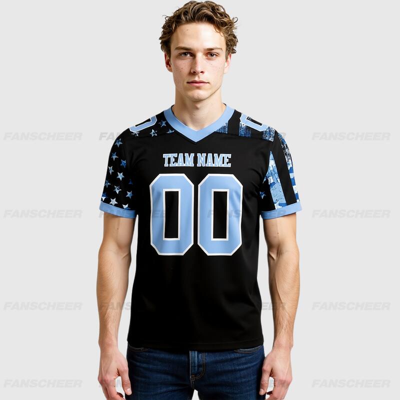 Custom Football Jersey Black Light Blue-White 3D Pattern American Flag Mesh Authentic