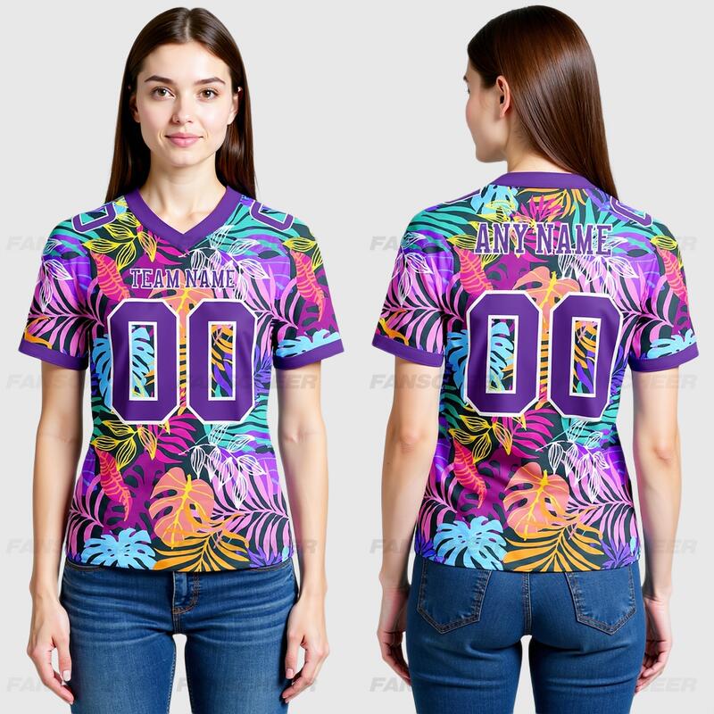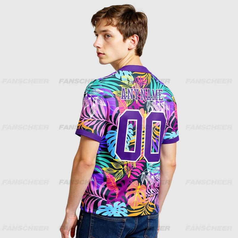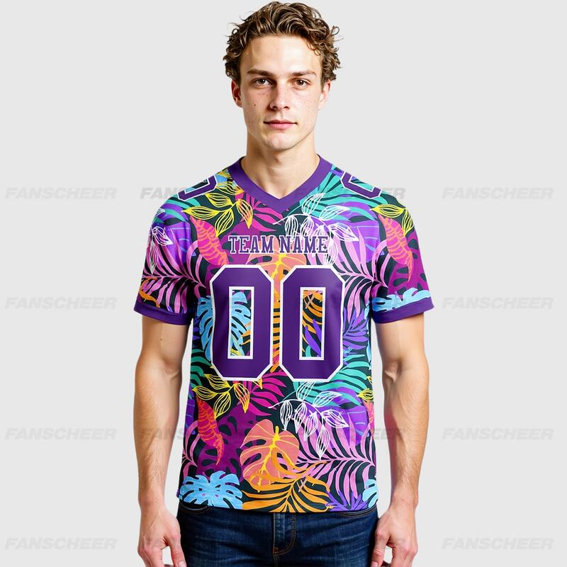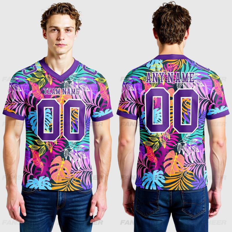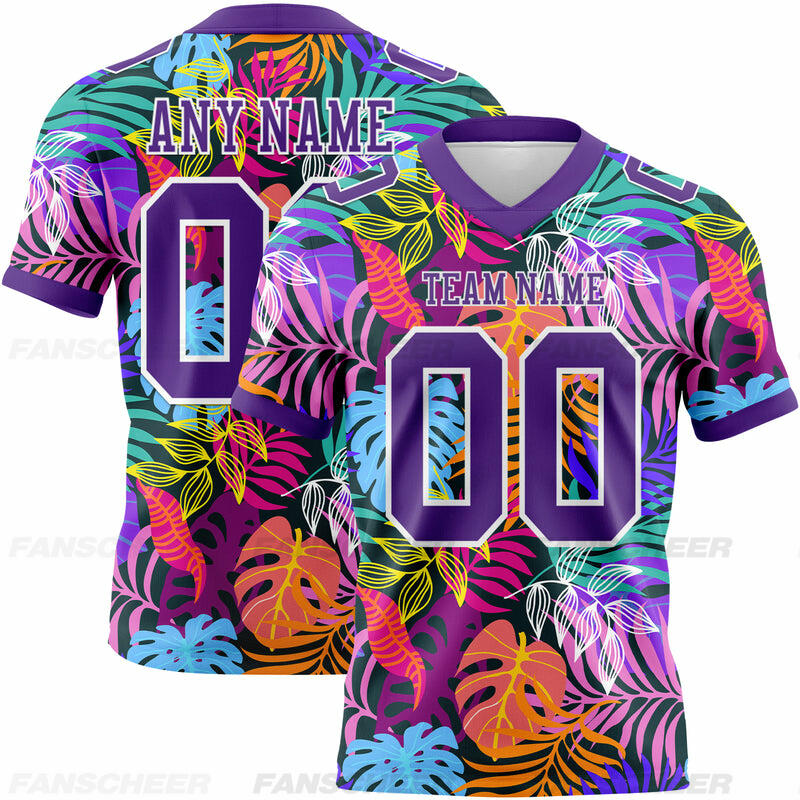 Custom Football Jersey Black Purple-White 3D Pattern Tropical Hawaii Jungle Leaves Mesh Authentic