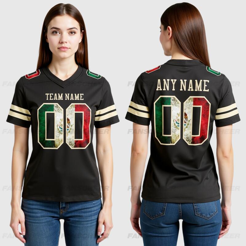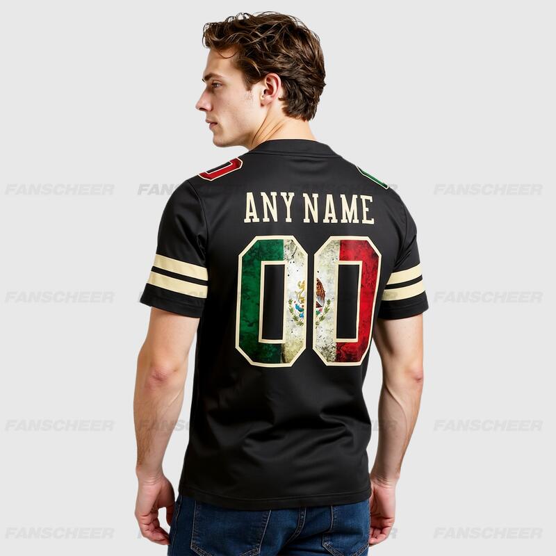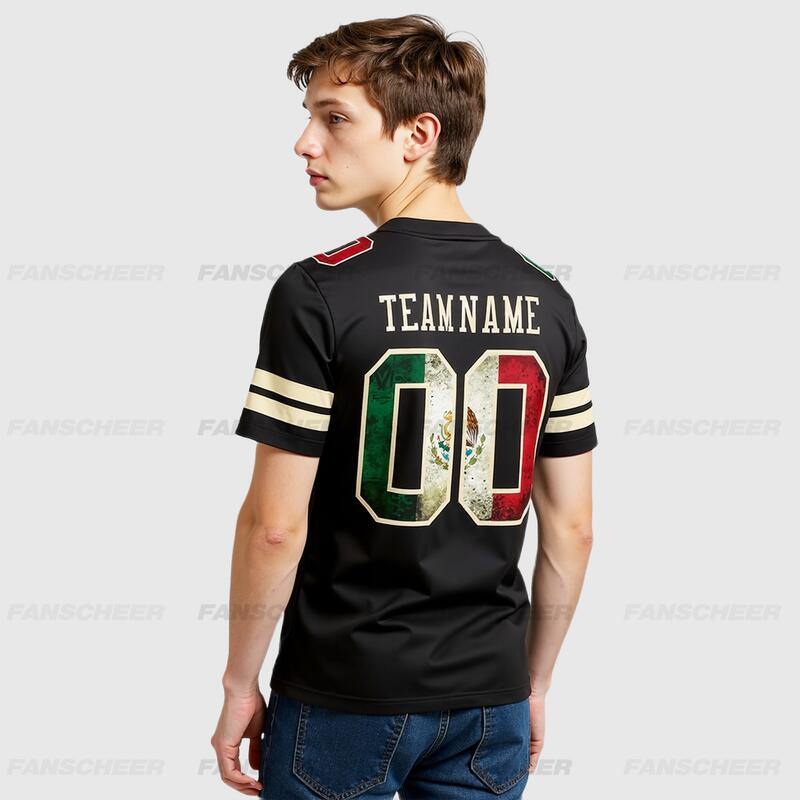 Custom Football Jersey Black Vintage Mexican Flag-Cream Mesh Authentic