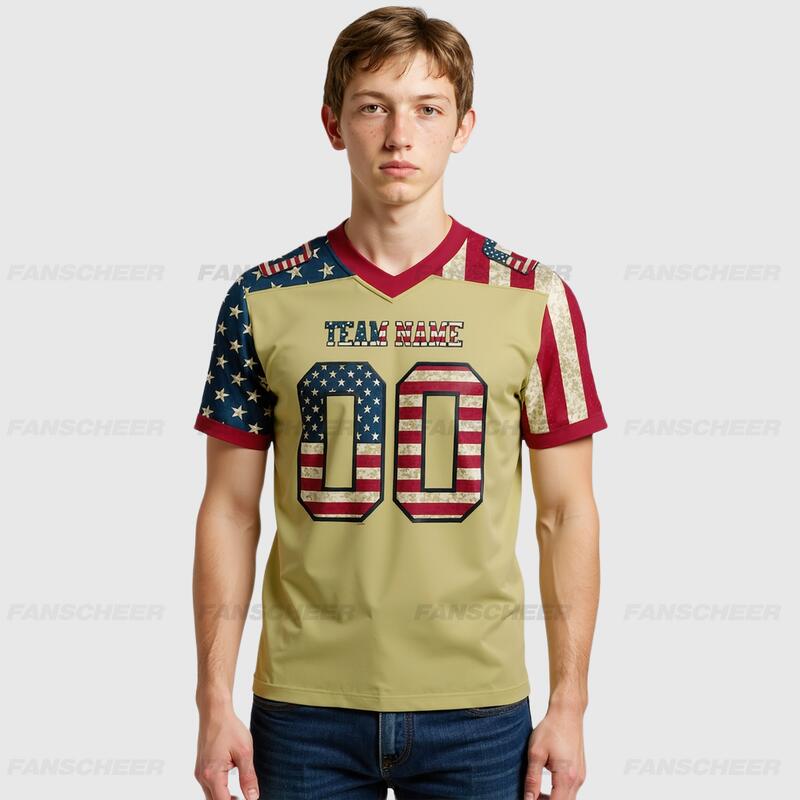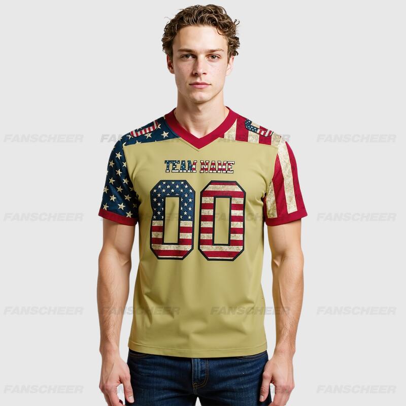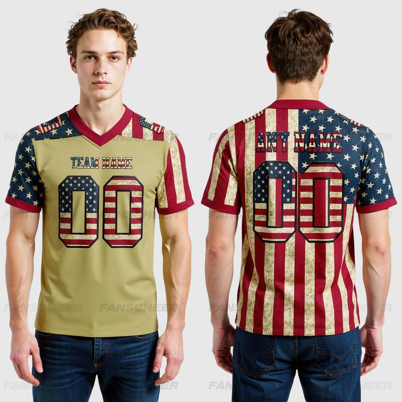 Custom Football Jersey Cream Vintage USA Flag Crimson-Black 3D Pattern Mesh Authentic