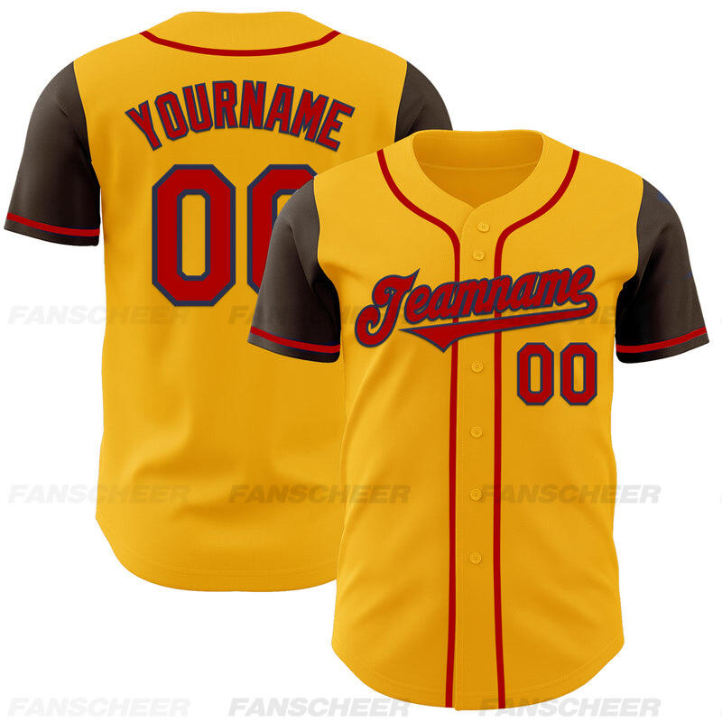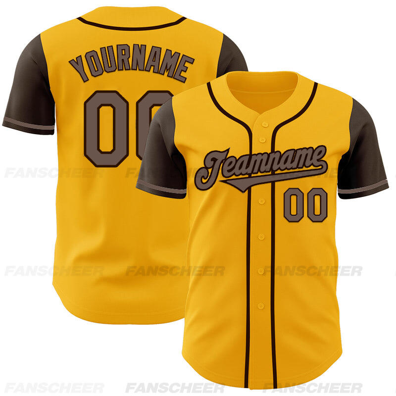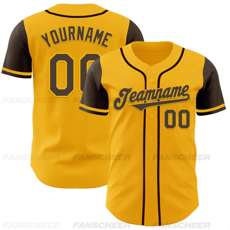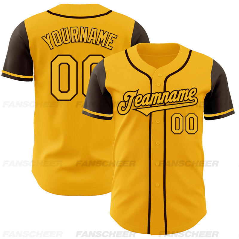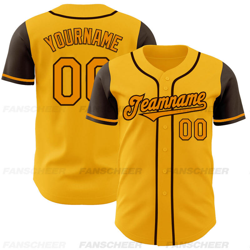 Custom Gold Brown Authentic Two Tone Baseball Jersey with Personalized Number and Logo for Games Practices and Fan Events