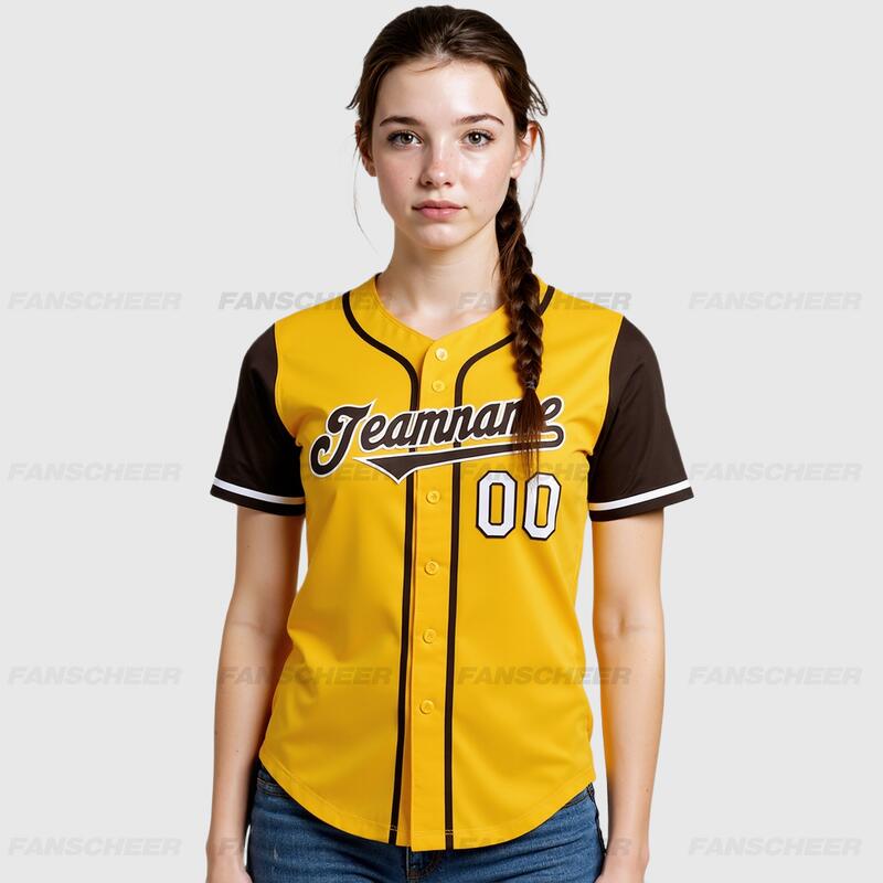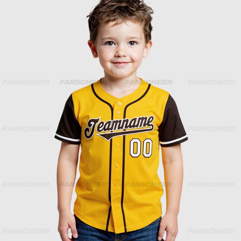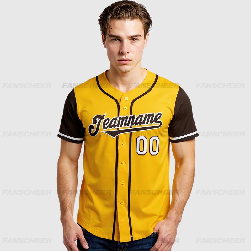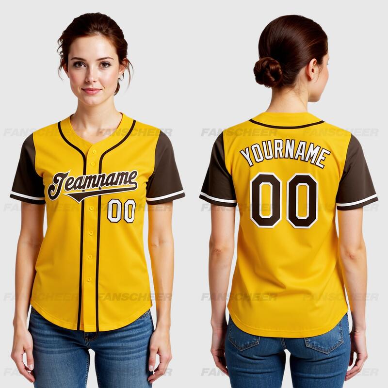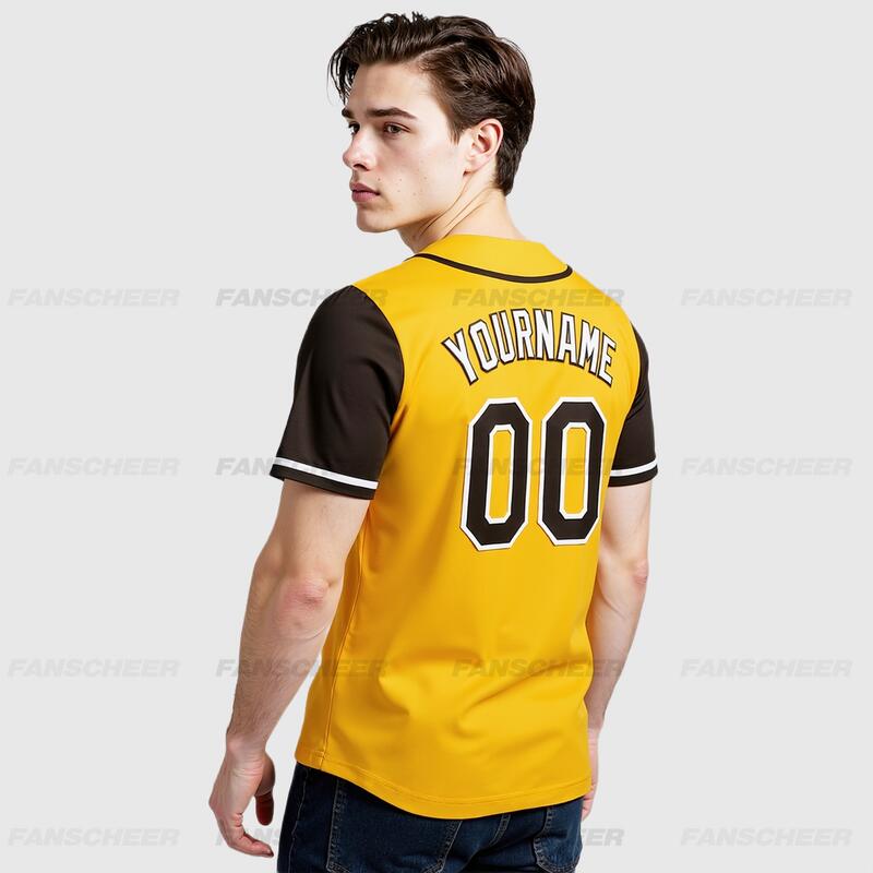 Custom Gold Brown Authentic Two Tone Baseball Jersey with Personalized Number and Logo for Games Practices and Fan Events
