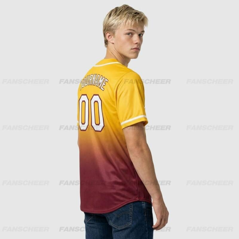Custom Gold Fade Fashion Baseball Jersey – Personalized Name, Number, Logo & Bulk Orders