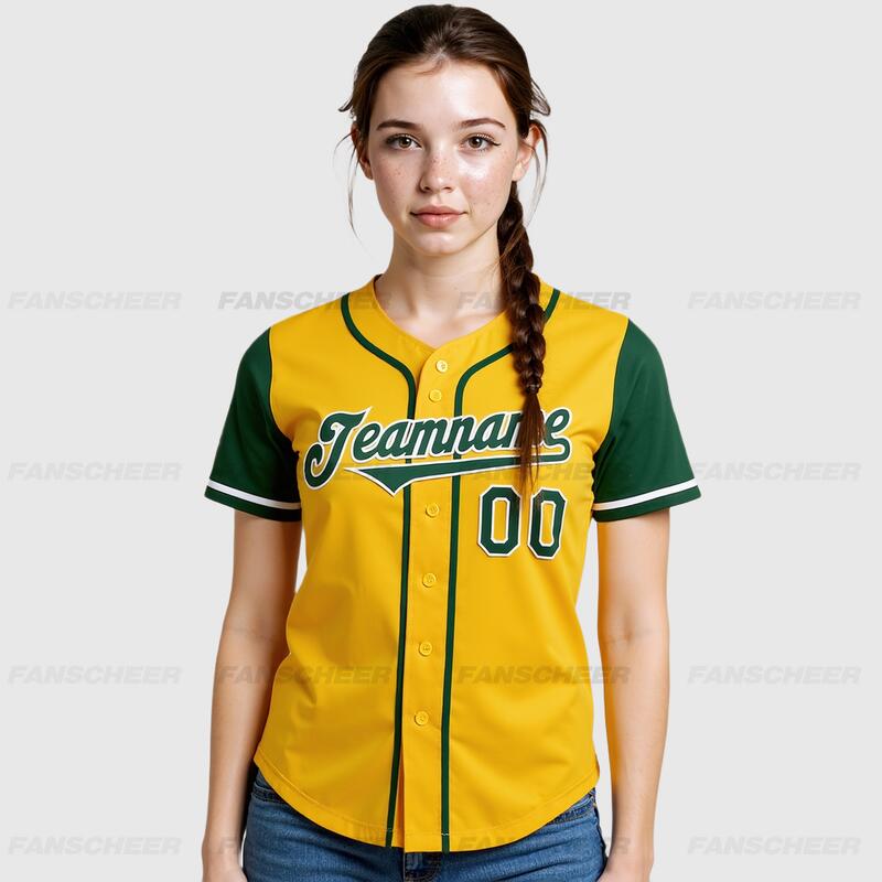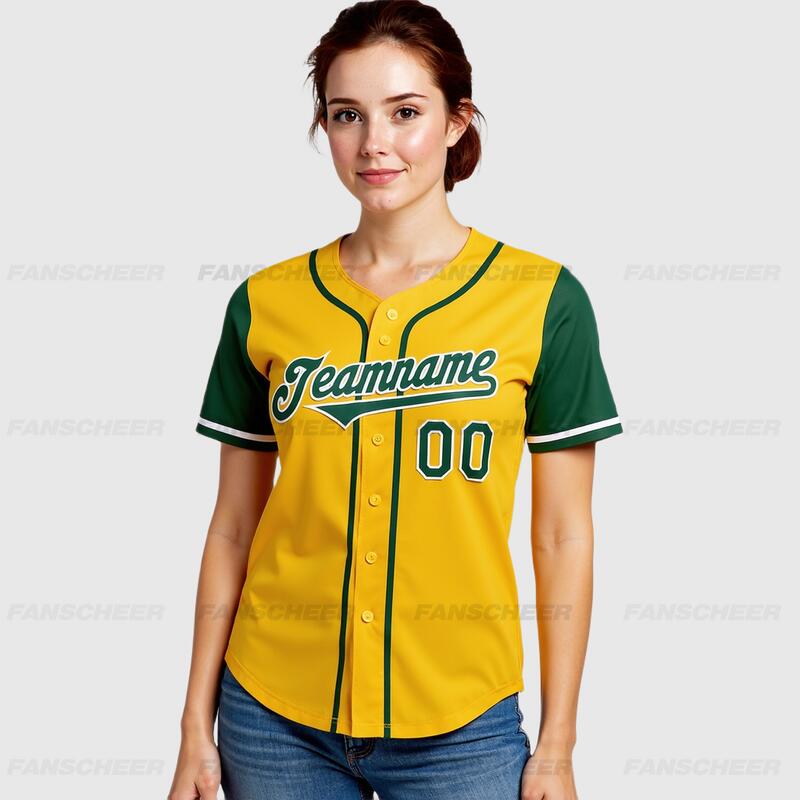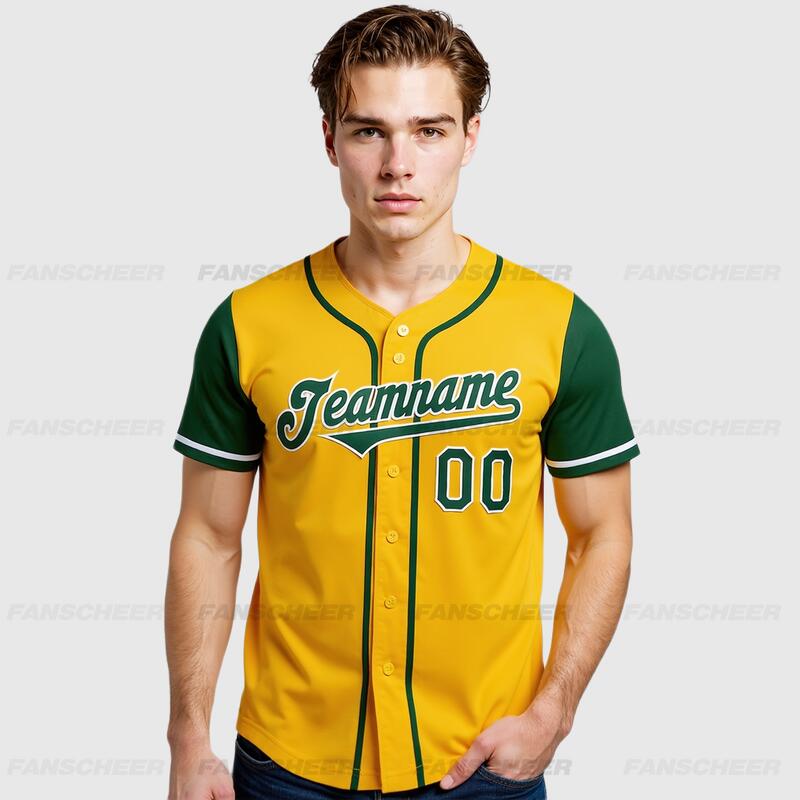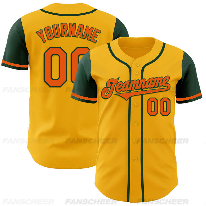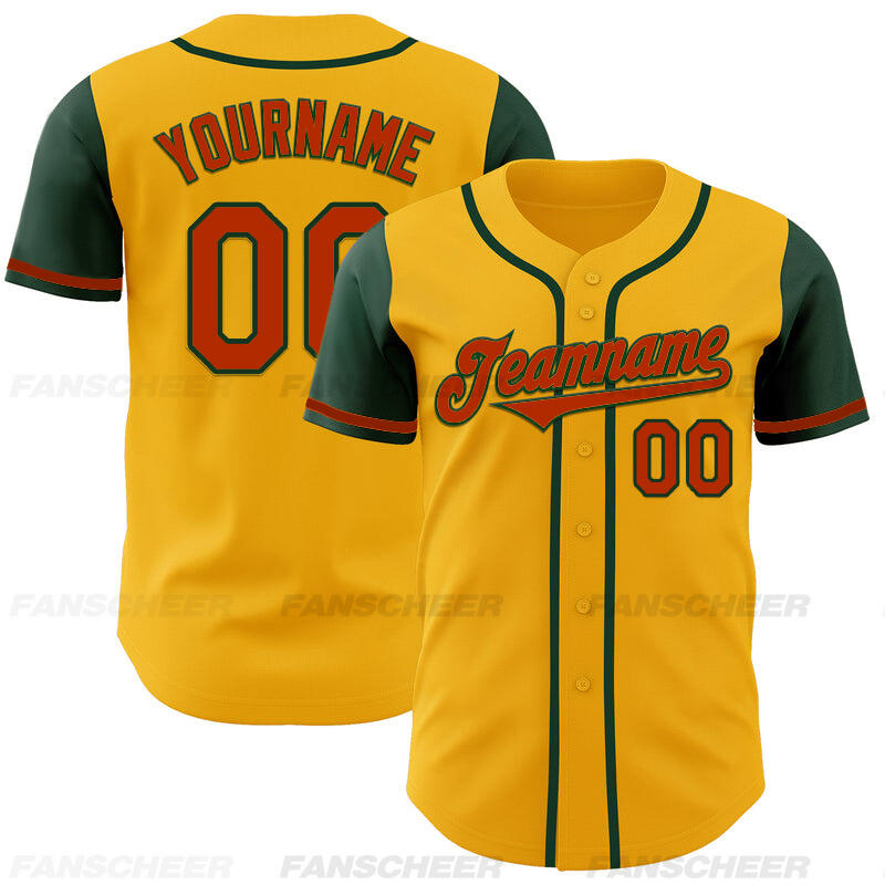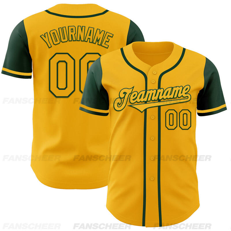Custom Gold Green Authentic Two Tone Baseball Jersey with Personalized Number and Logo for Games Practices and Fan Events