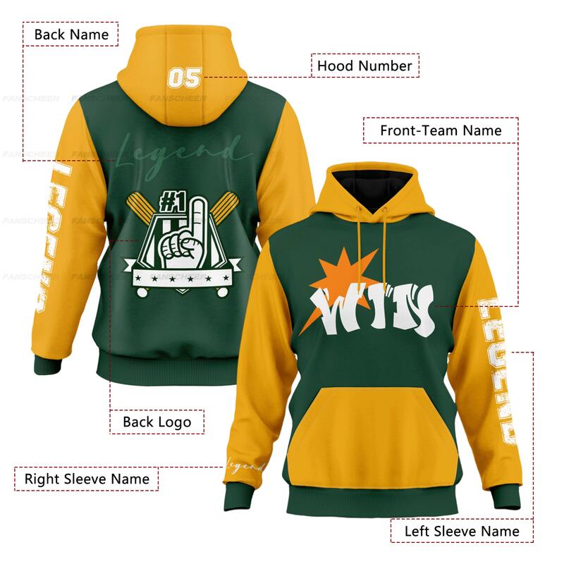 Custom Gold & Green Hoodie - Personalized with Name, Number & Logo