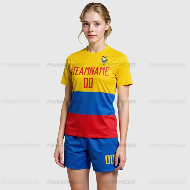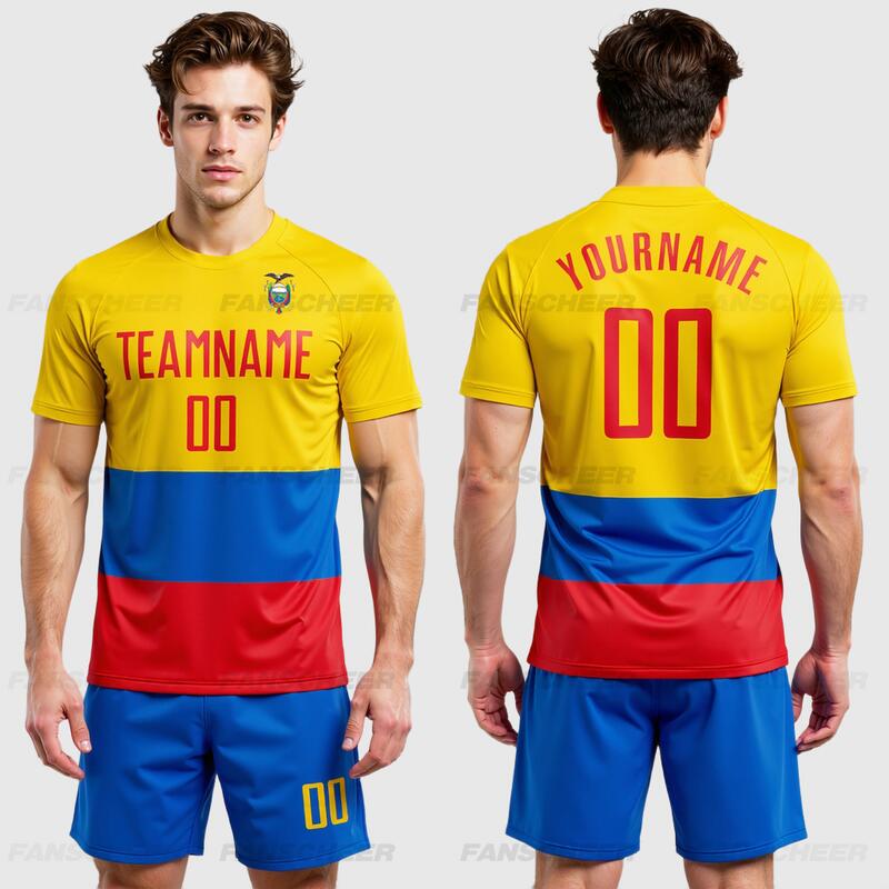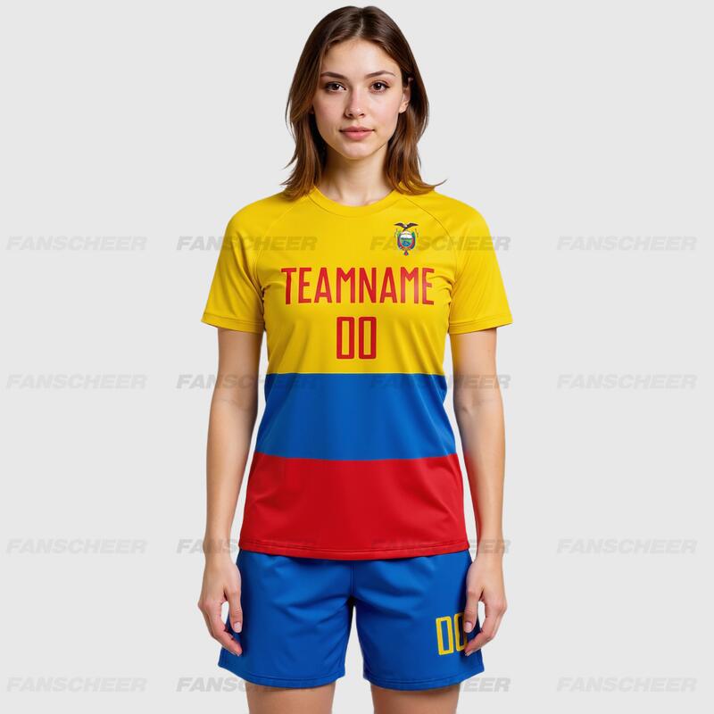 Custom Gold Red-Royal Sublimation Ecuador Flag Soccer Uniform Jersey