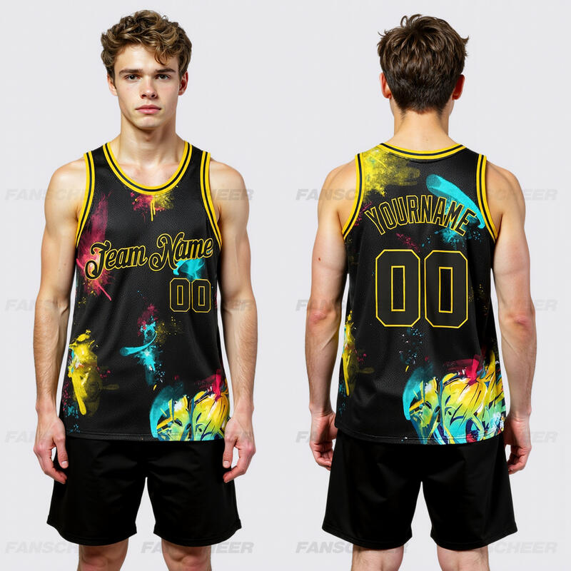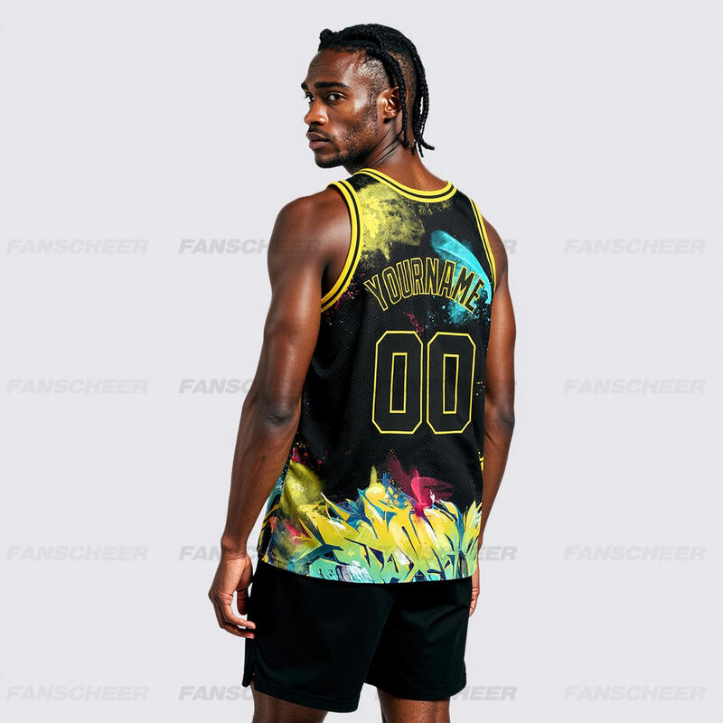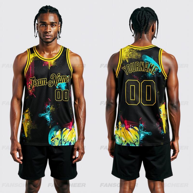 Custom Graffiti Pattern Black-Gold 3D Authentic Basketball Jersey