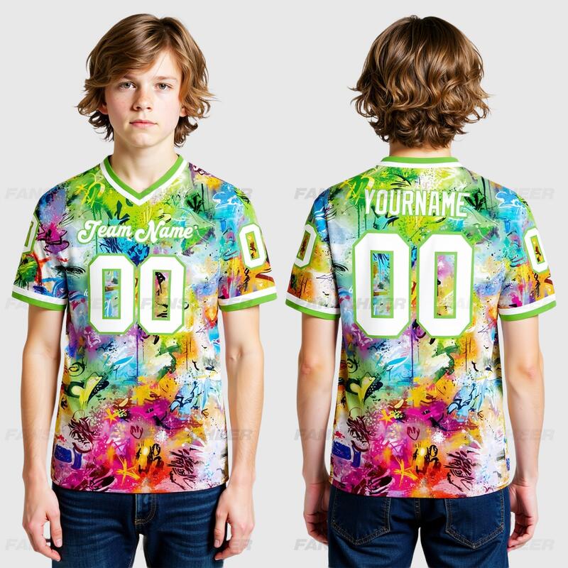 Custom Graffiti Pattern Neon Green 3D Mesh Authentic Throwback Football Jersey