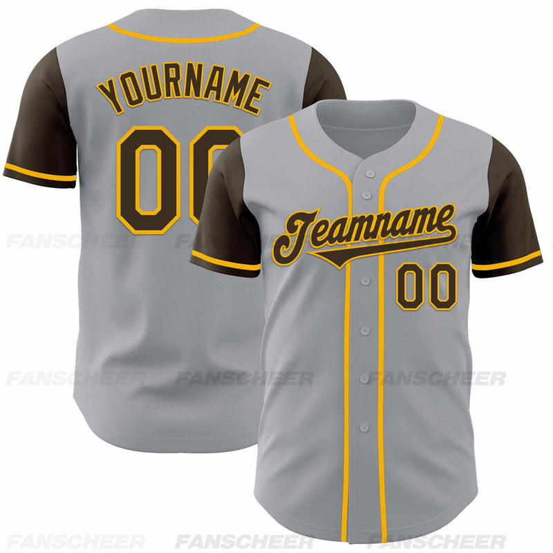 Custom Gray Brown Authentic Two Tone Baseball Jersey with Personalized Number and Logo for Games Practices and Fan Events