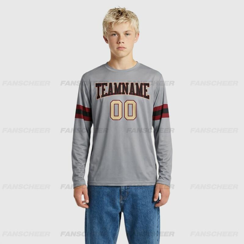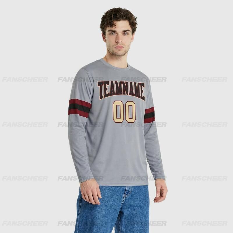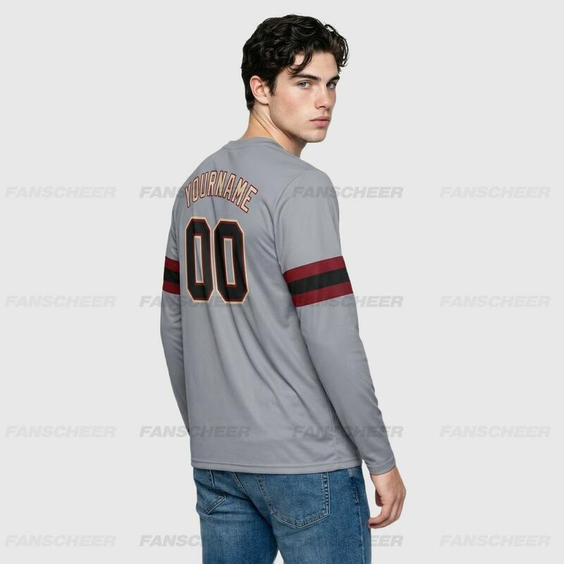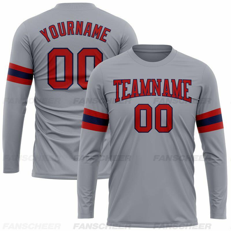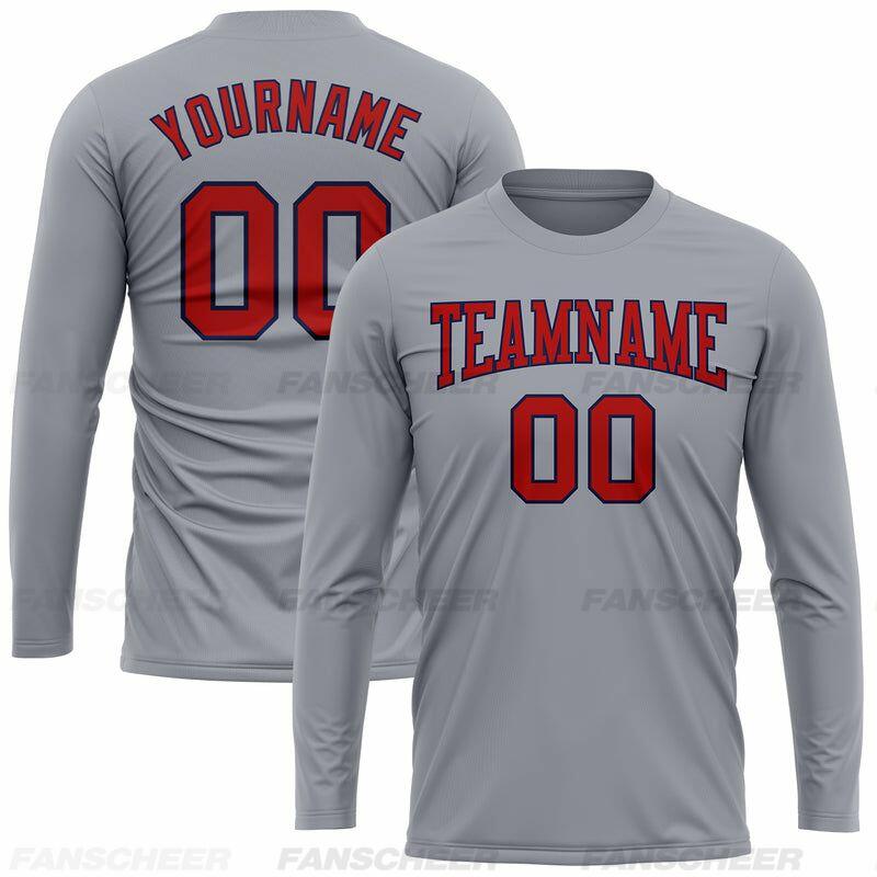 Custom Gray-Crimson Long Sleeve Performance T-Shirt
