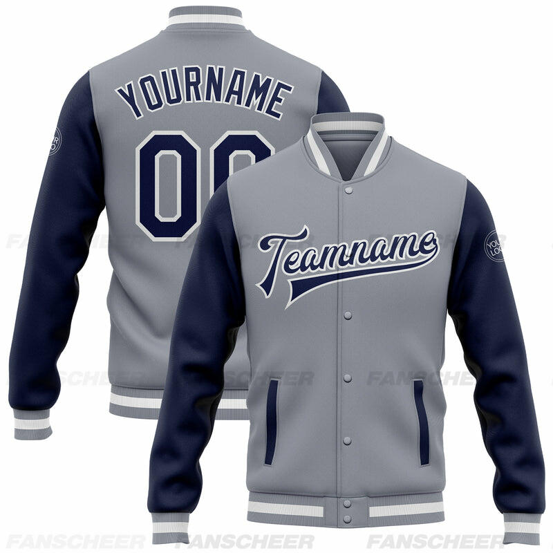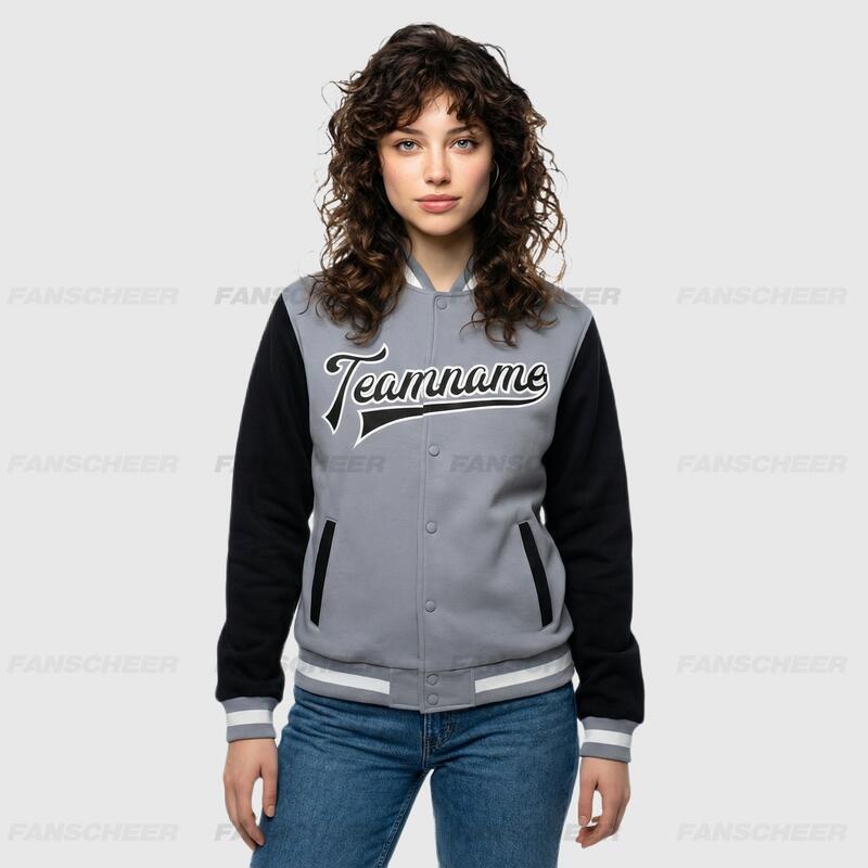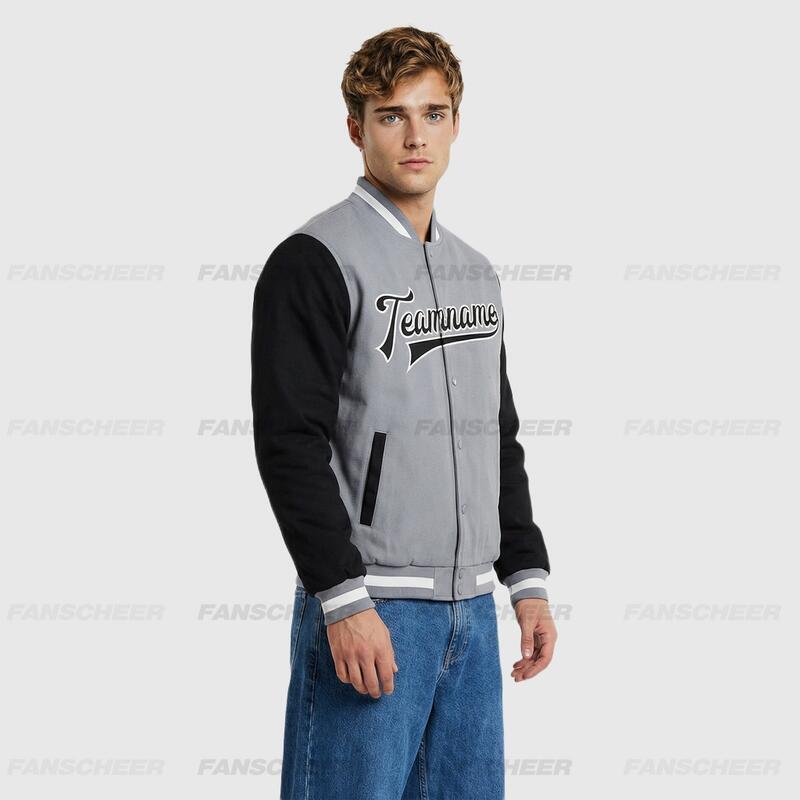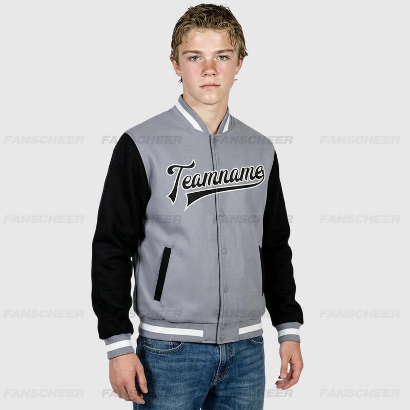 Custom Gray Full-Snap Varsity Two Tone Letterman Jacket Great for Casual Hangouts