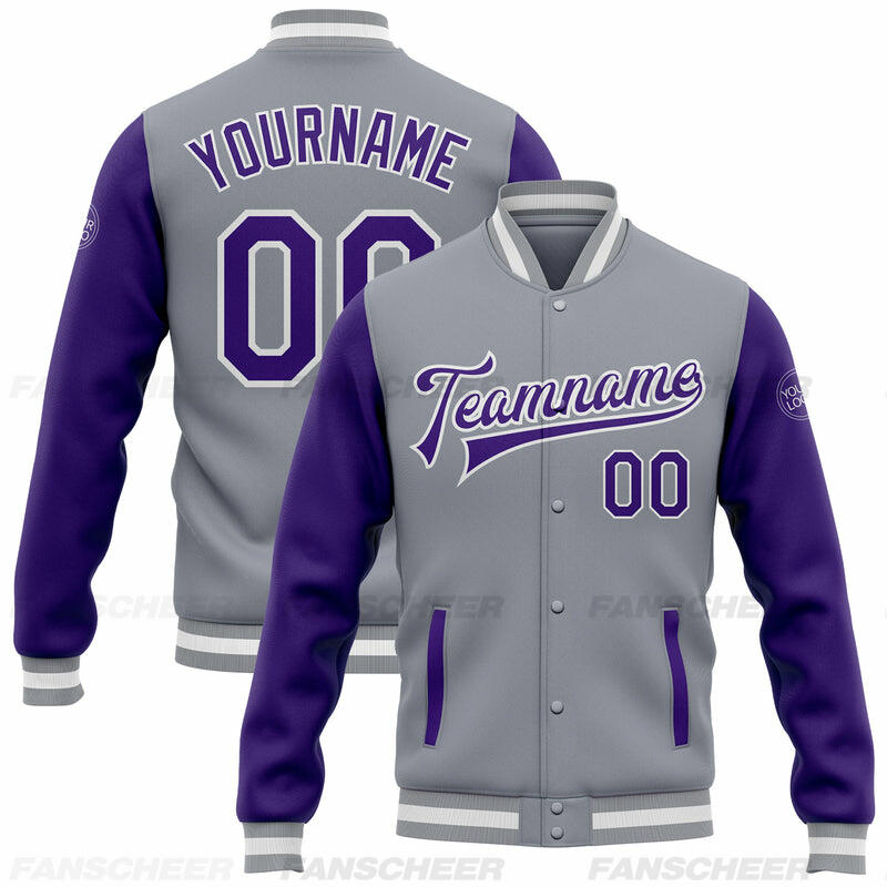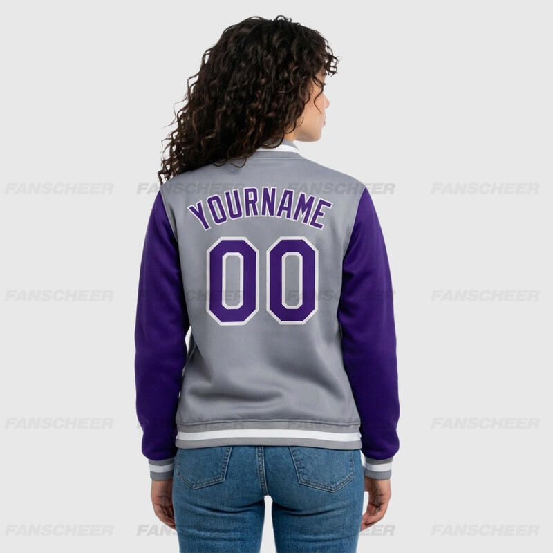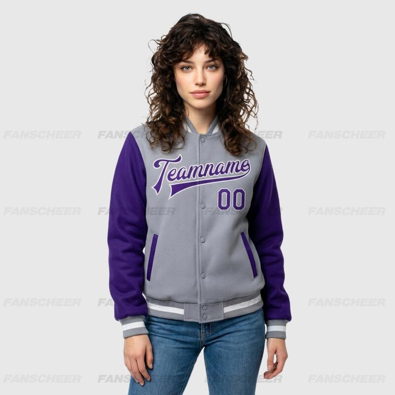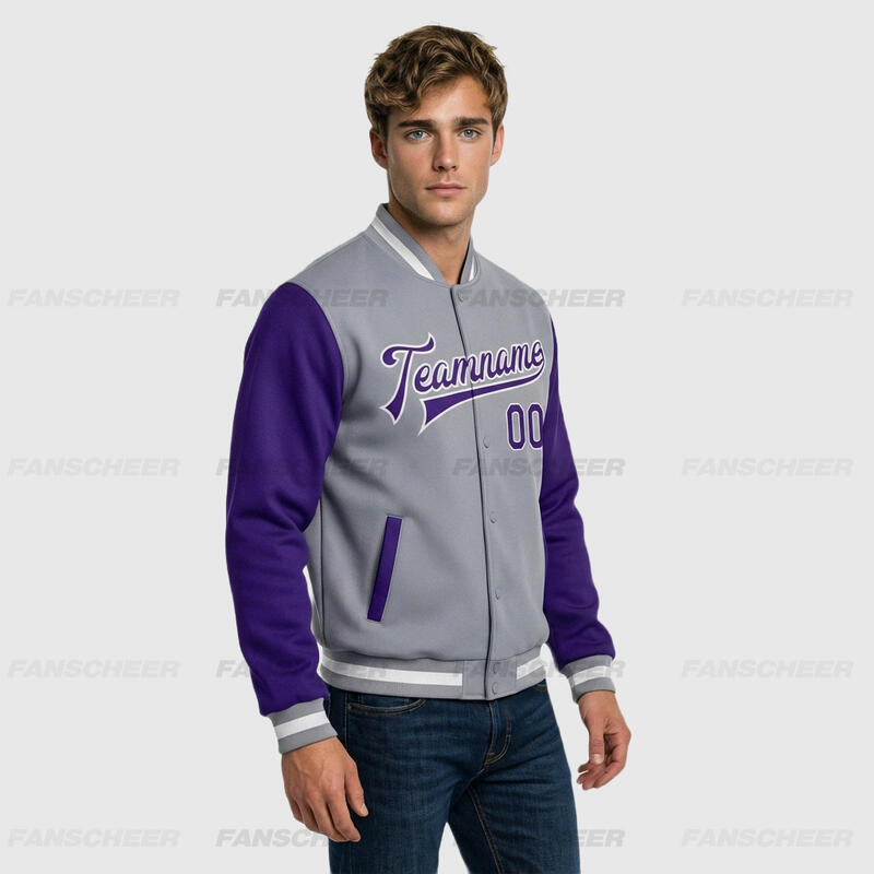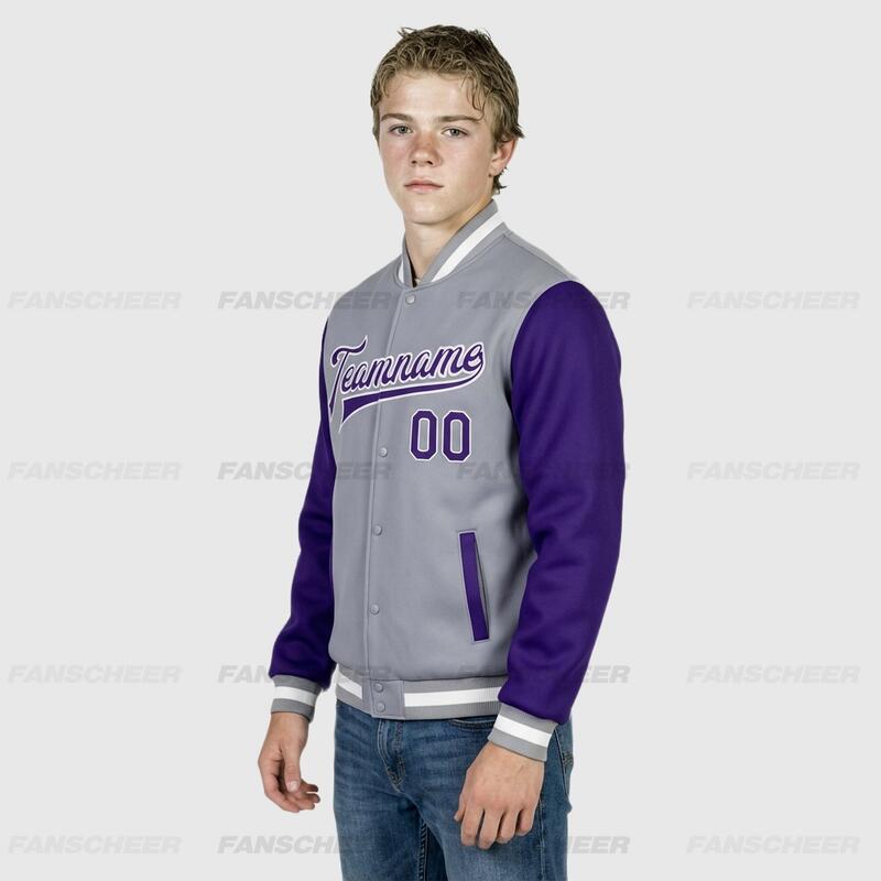 Custom Gray Full-Snap Varsity Two Tone Letterman Jacket Perfect for Weekend Casual Trips