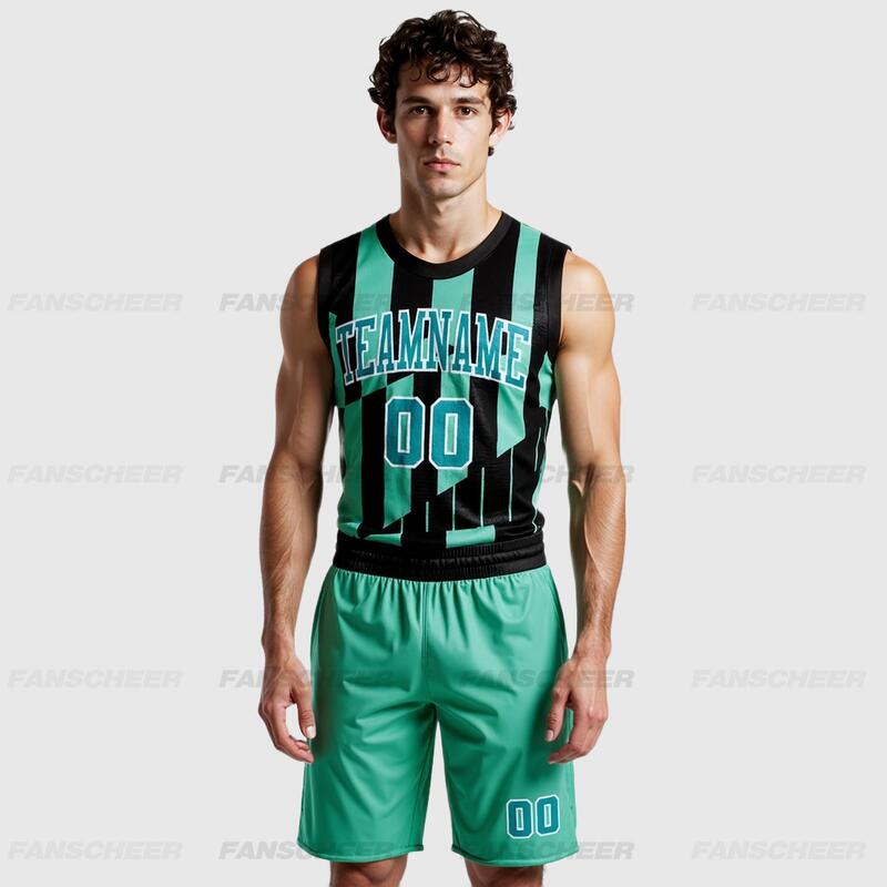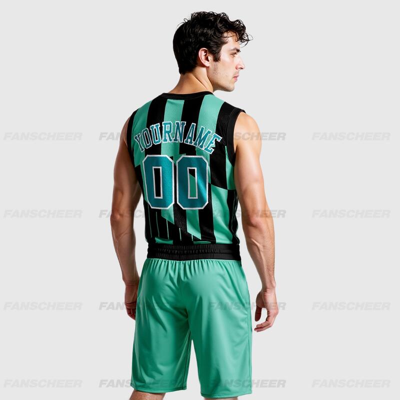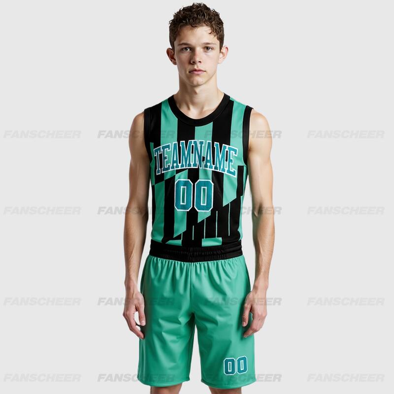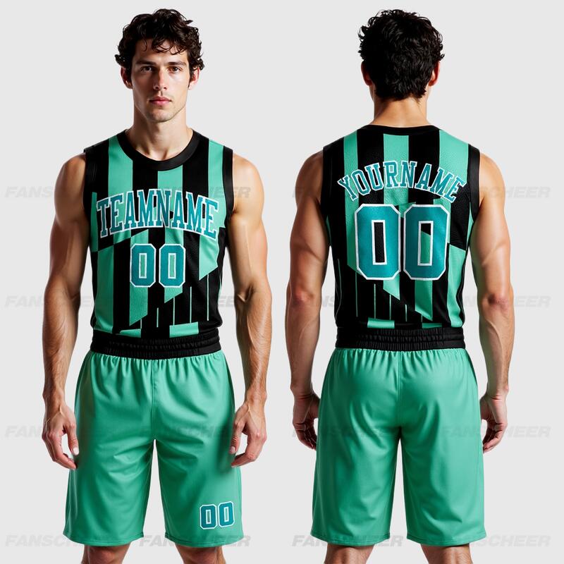 Custom Green Aqua-Black Round Neck Sublimation Basketball Suit Jersey