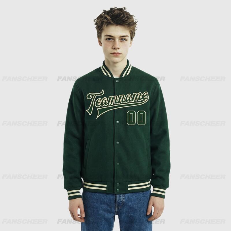 Custom Green Full-Snap Varsity Letterman Jacket – Ideal for College Club Events