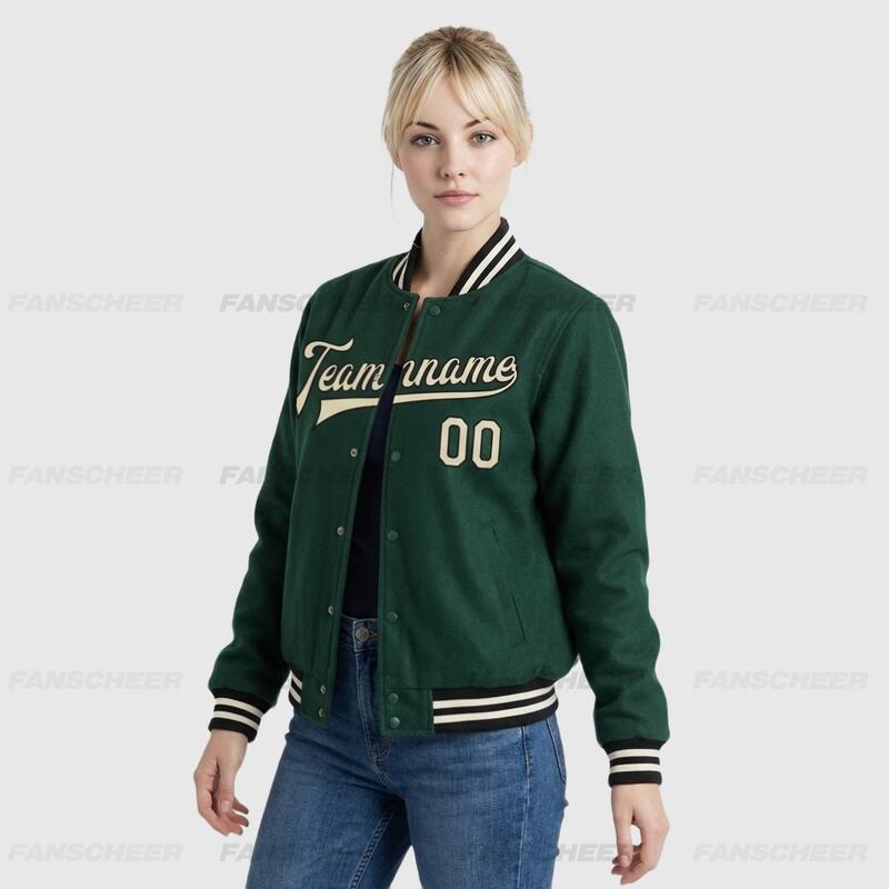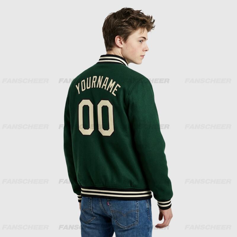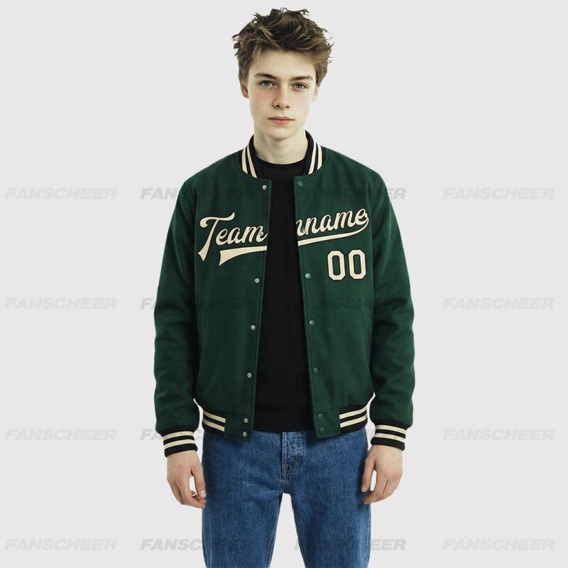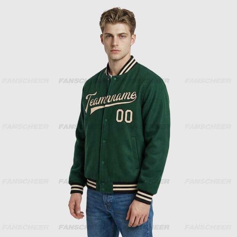 Custom Green Full-Snap Varsity Letterman Jacket – Ideal for Daily Casual Styling