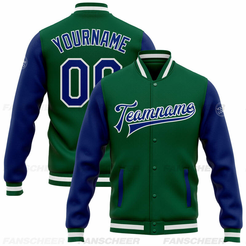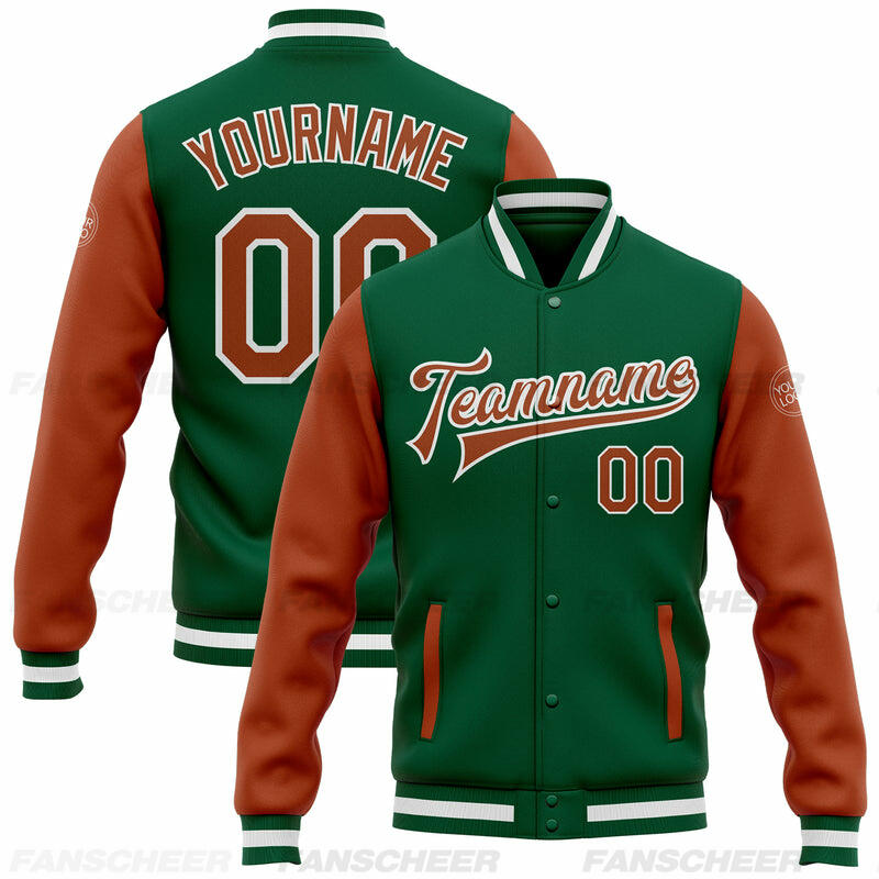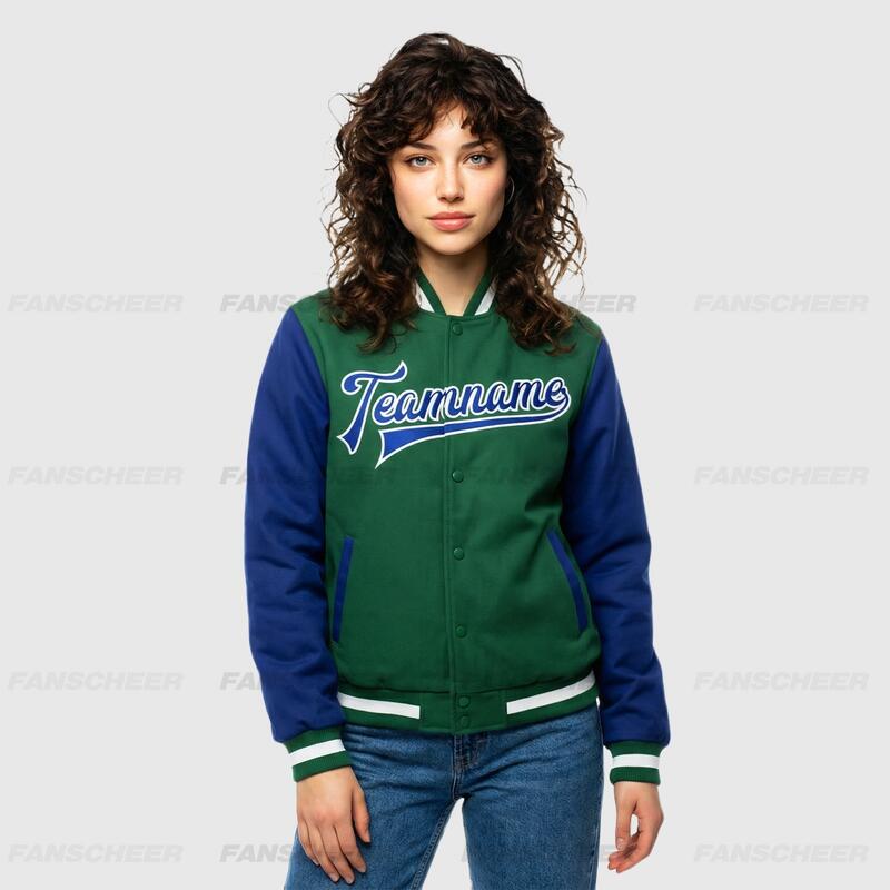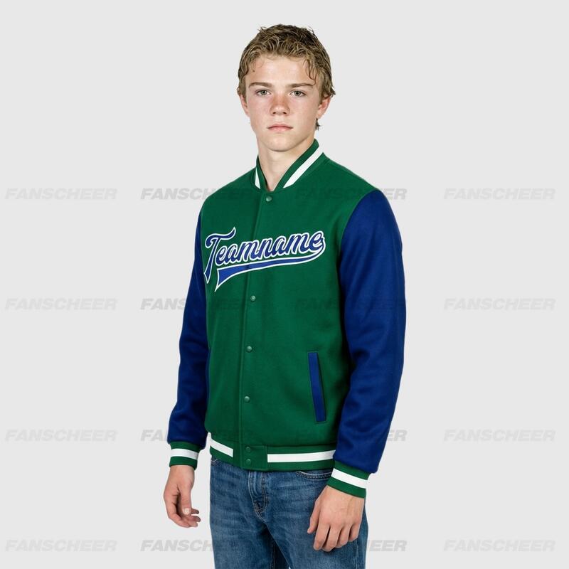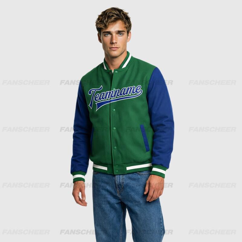 Custom Green Full-Snap Varsity Two Tone Letterman Jacket Ideal for Everyday Casual Outings