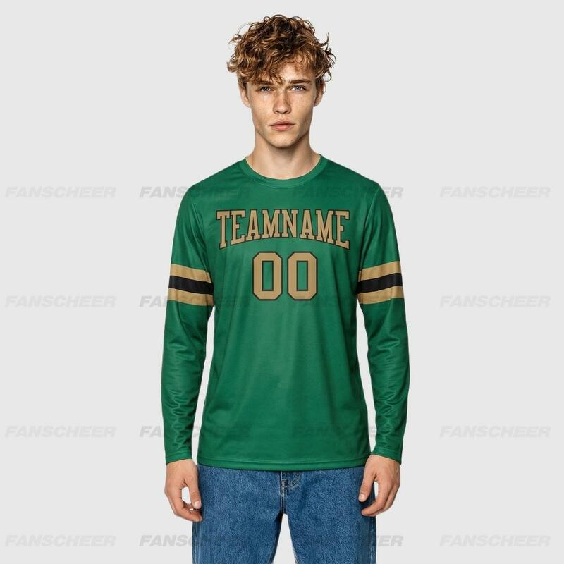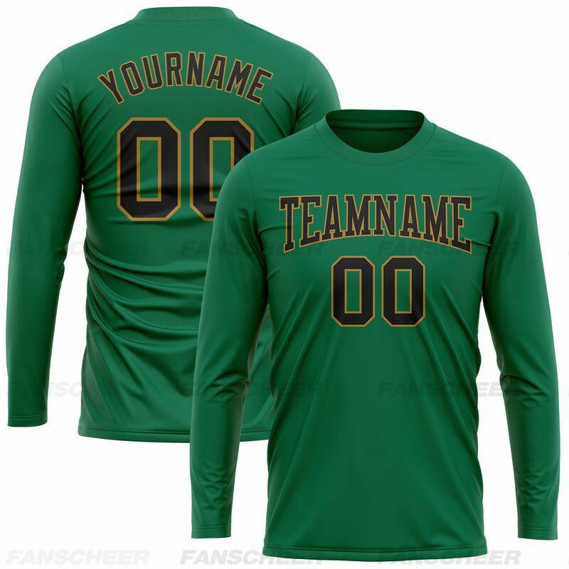 Custom Green-Old Gold Long Sleeve Performance T-Shirt