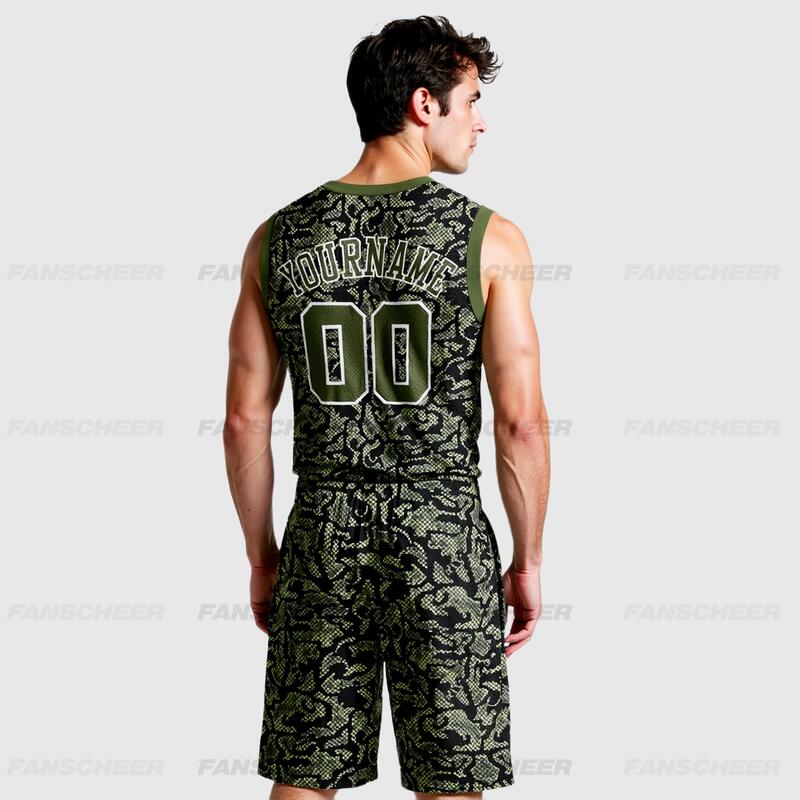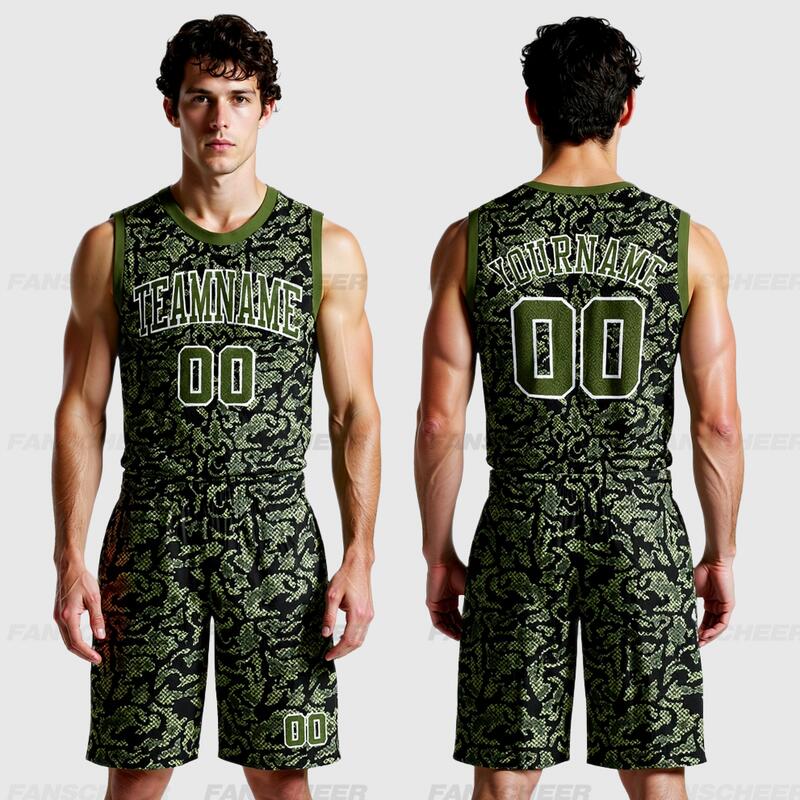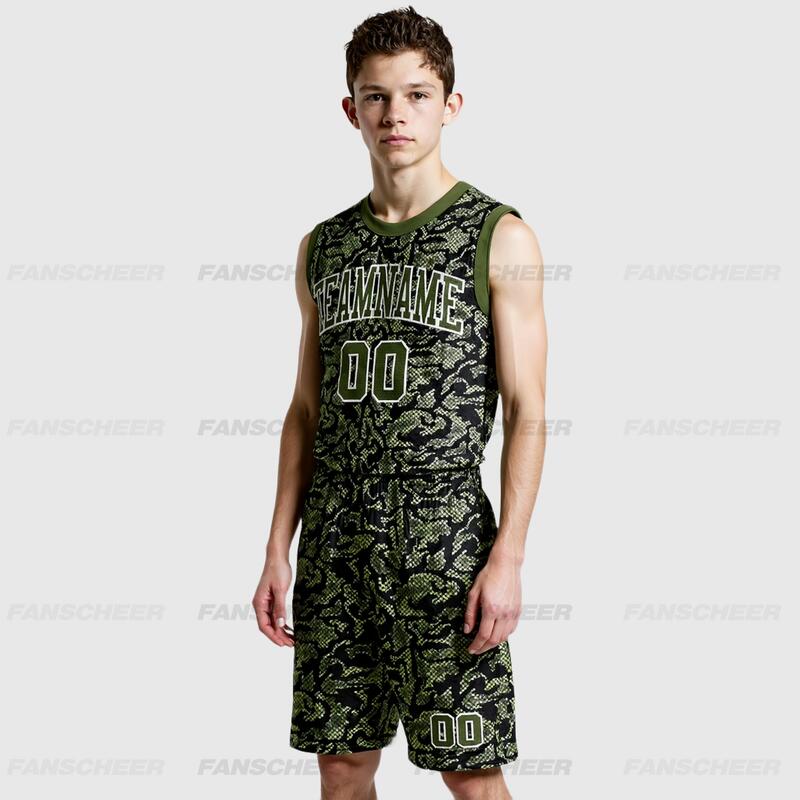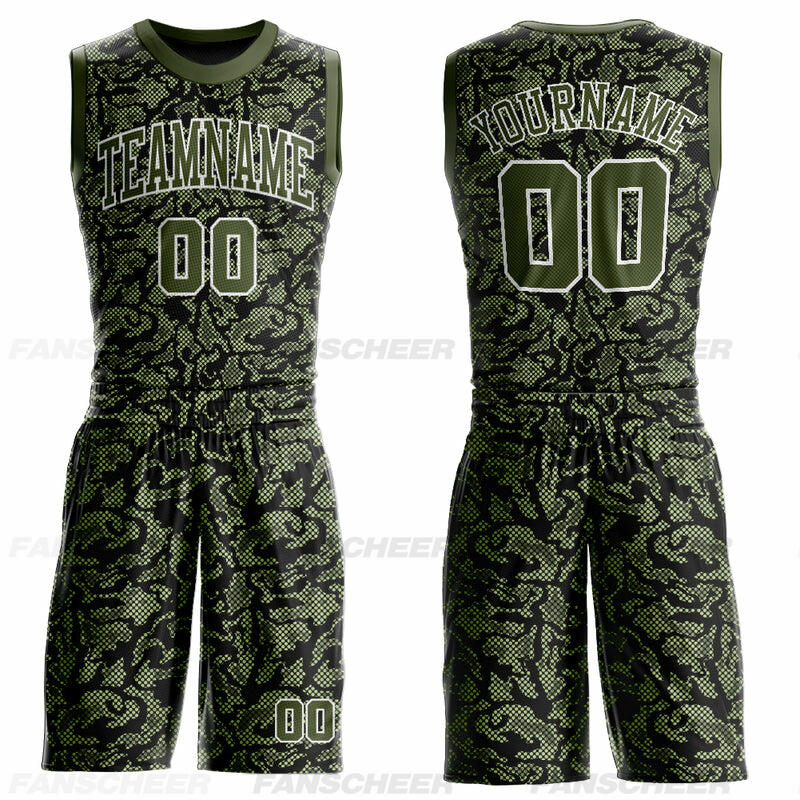 Custom Green Olive-Navy Round Neck Sublimation Basketball Suit Jersey