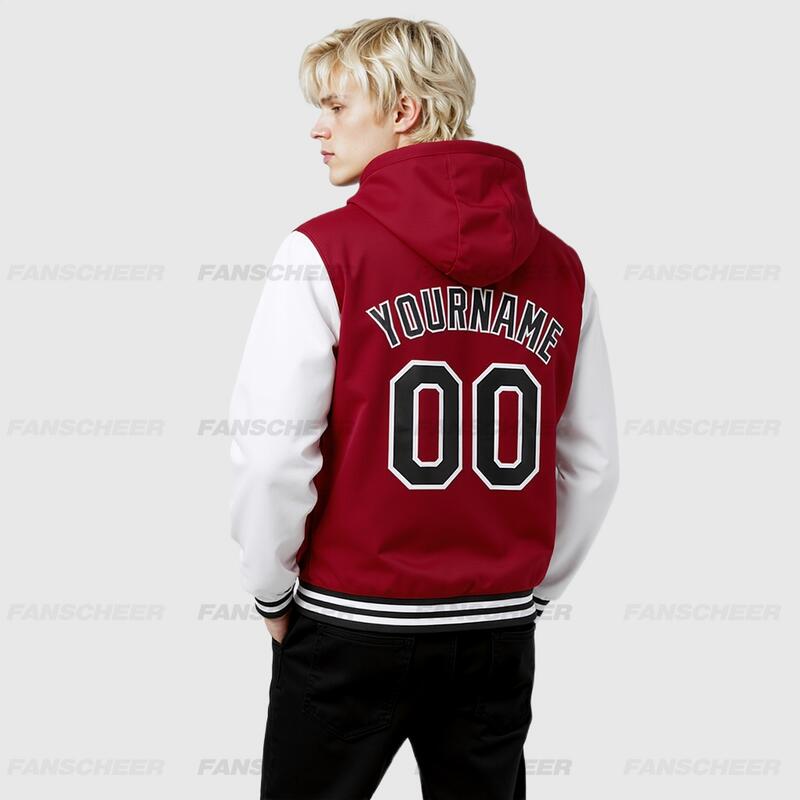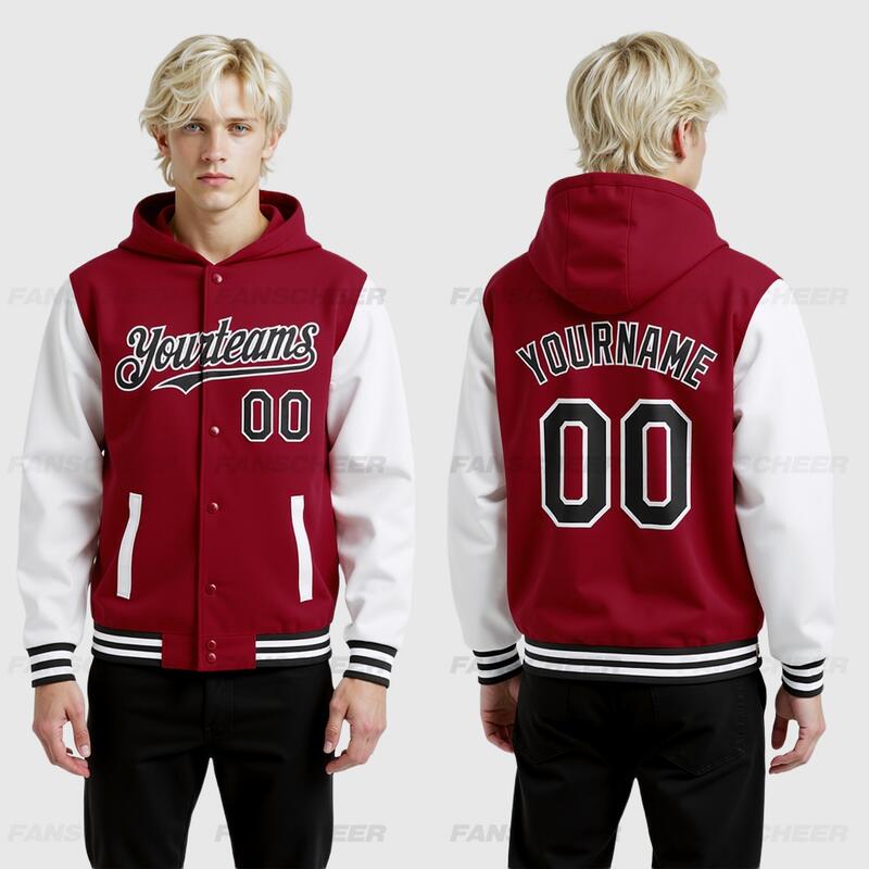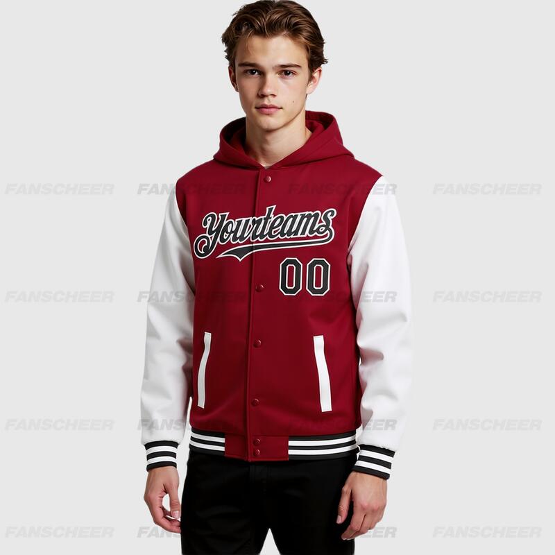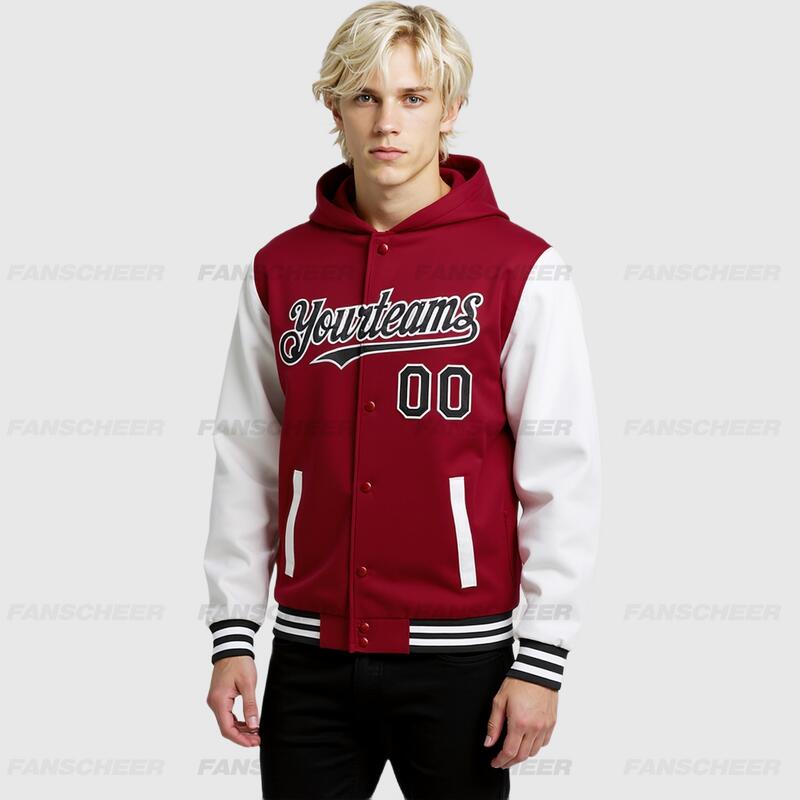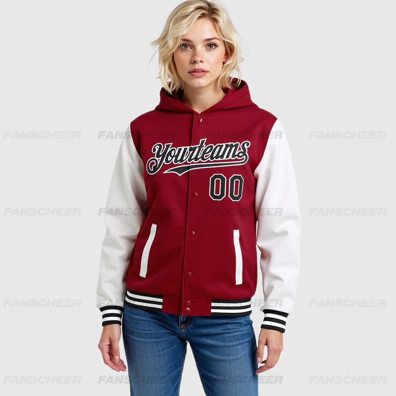Custom Hoodie Jacket Crimson Black-White Bomber Full-Snap Varsity Letterman Two Tone Hoodie Jacket