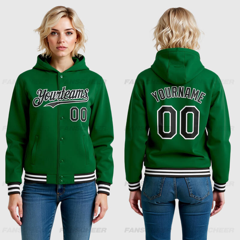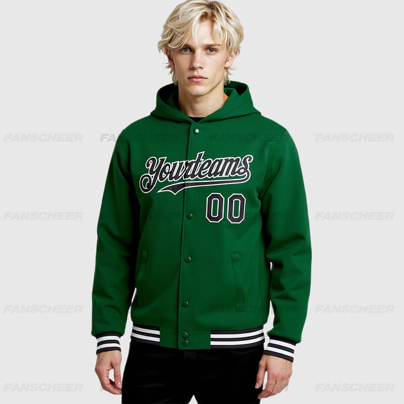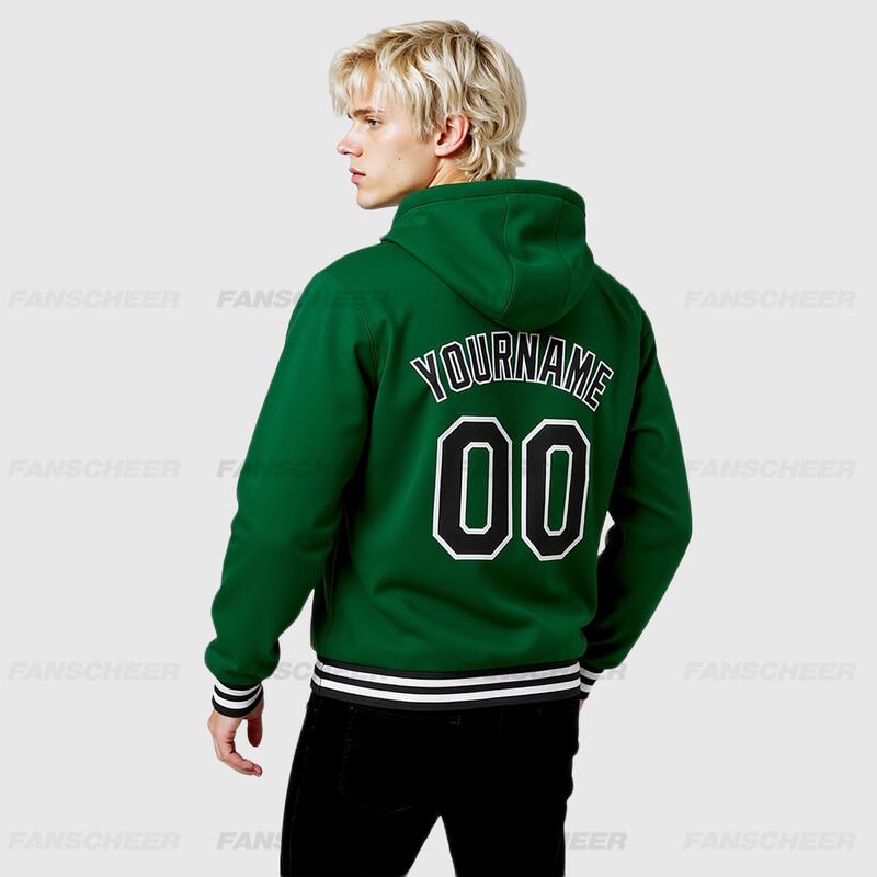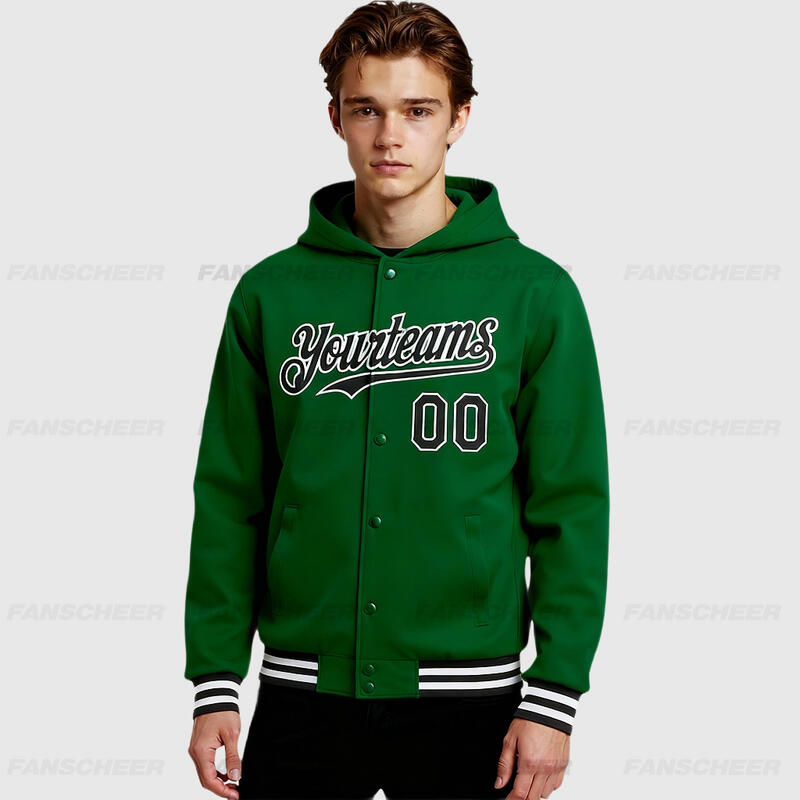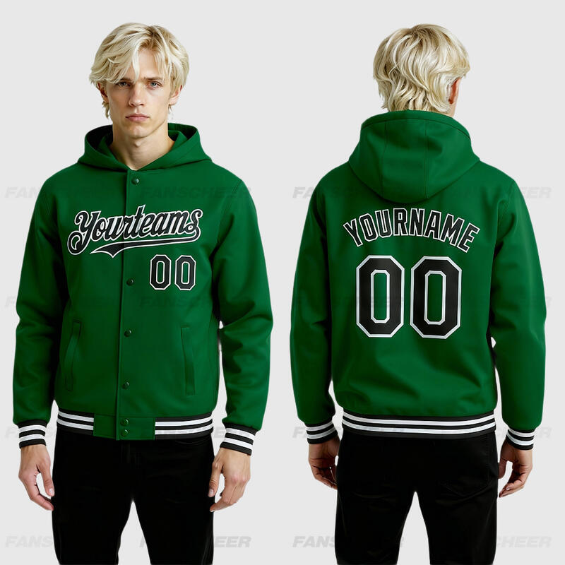 Custom Hoodie Jacket Kelly Green Black-White Bomber Full-Snap Varsity Letterman Two Tone Hoodie Jacket