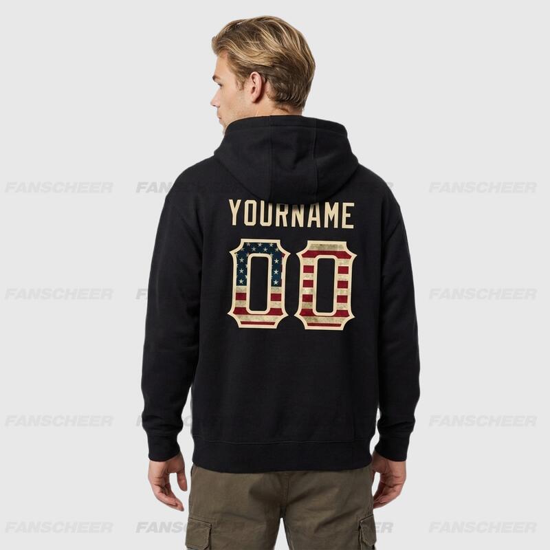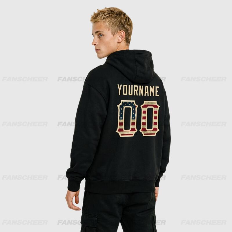 Custom Hoodie Stitched Vintage USA Flag-Cream Sports Pullover Sweatshirt Hoodie