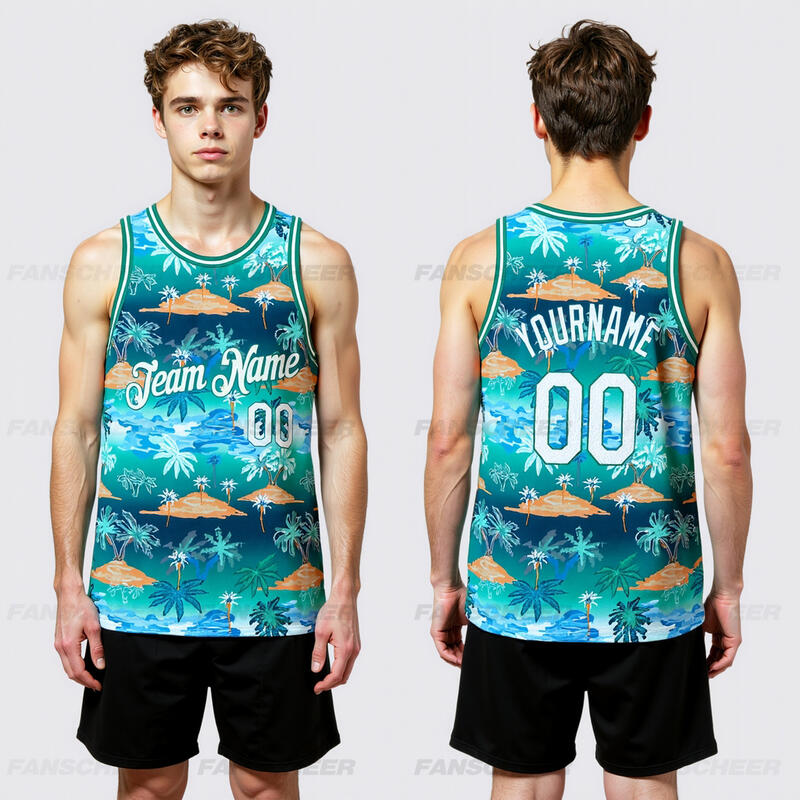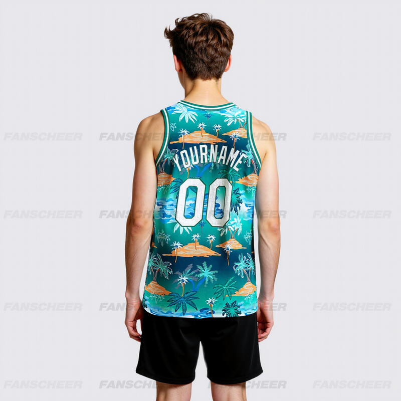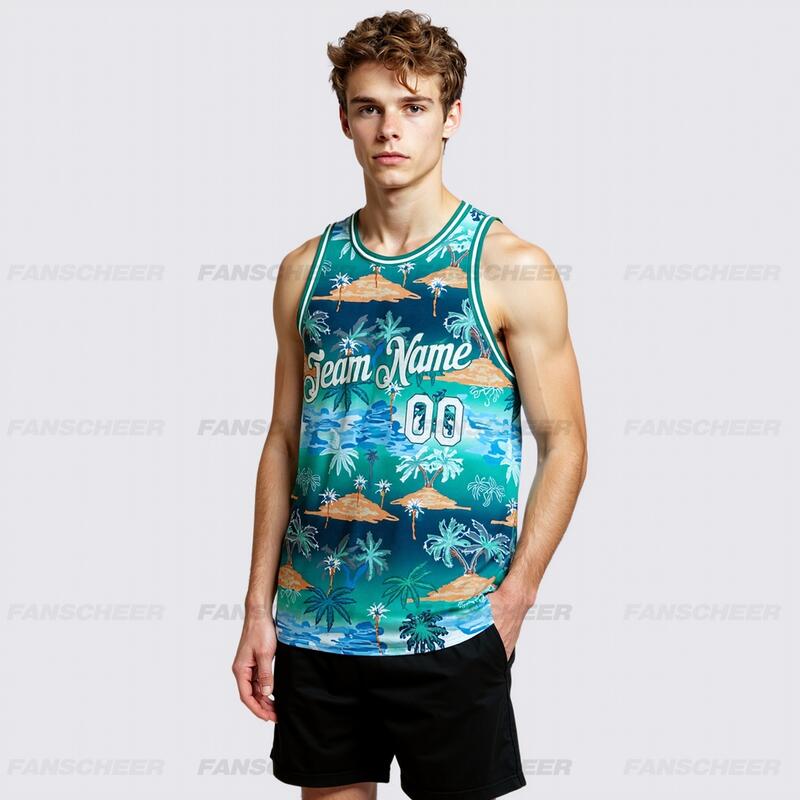 Custom Kelly Green White-Kelly Green 3D Pattern Hawaii Palm Trees Authentic Basketball Jersey
