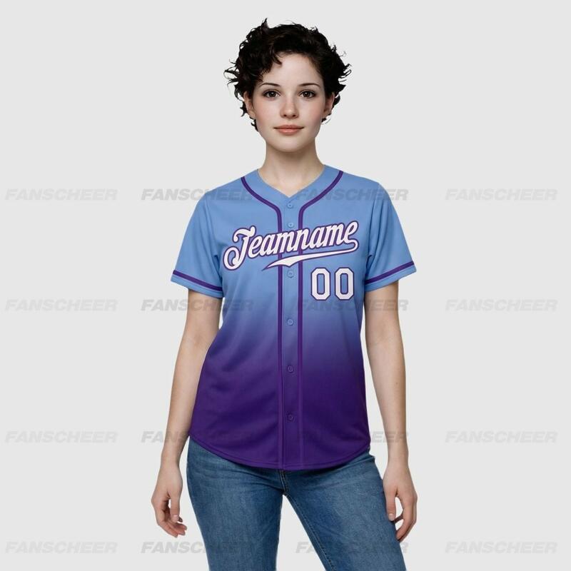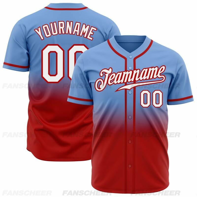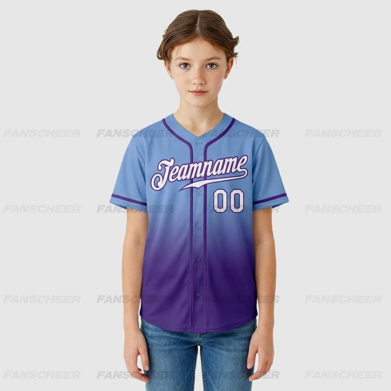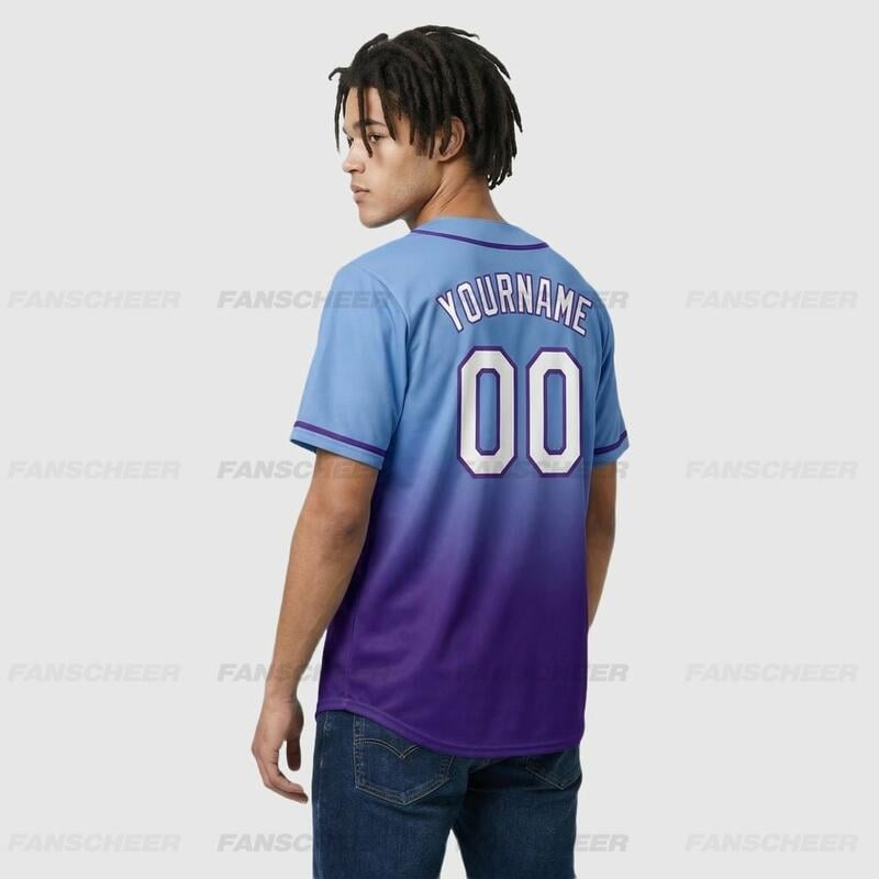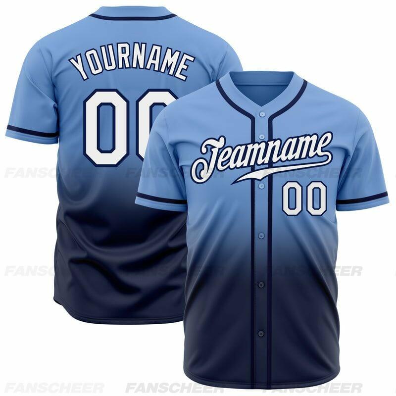 Custom Light Blue Fade Fashion Baseball Jersey – Personalized Name, Number, Logo & Bulk Orders