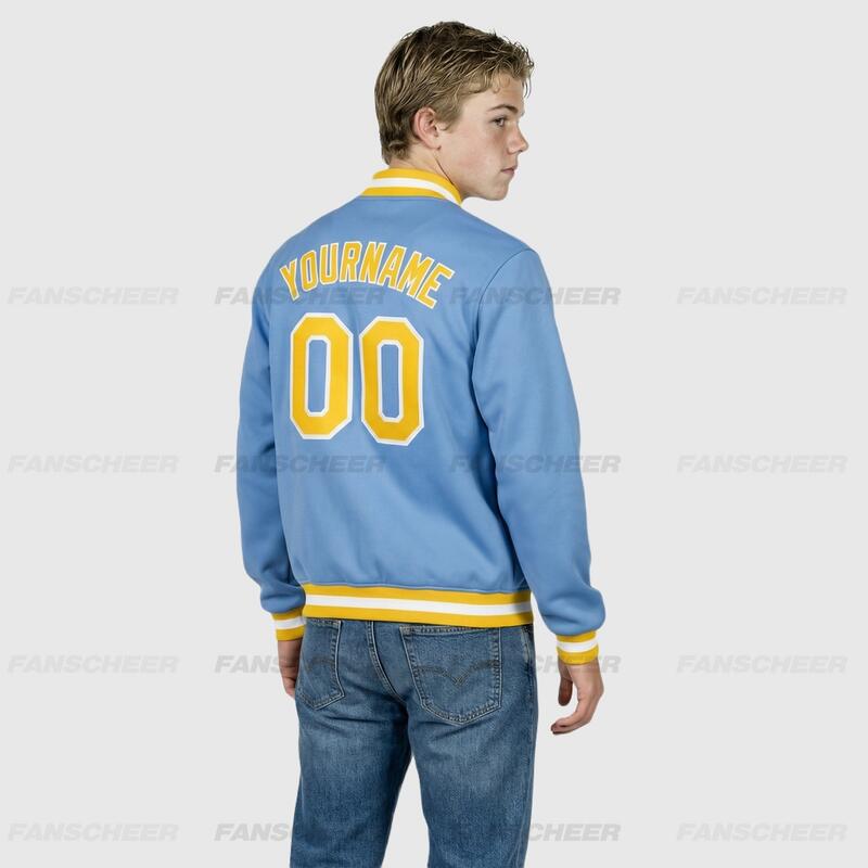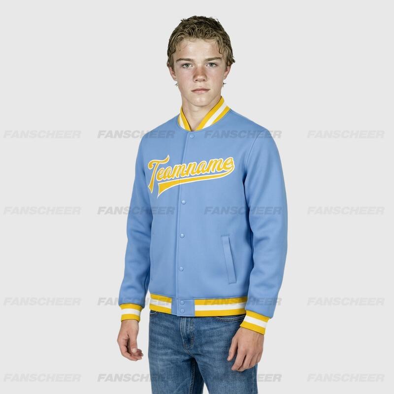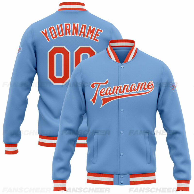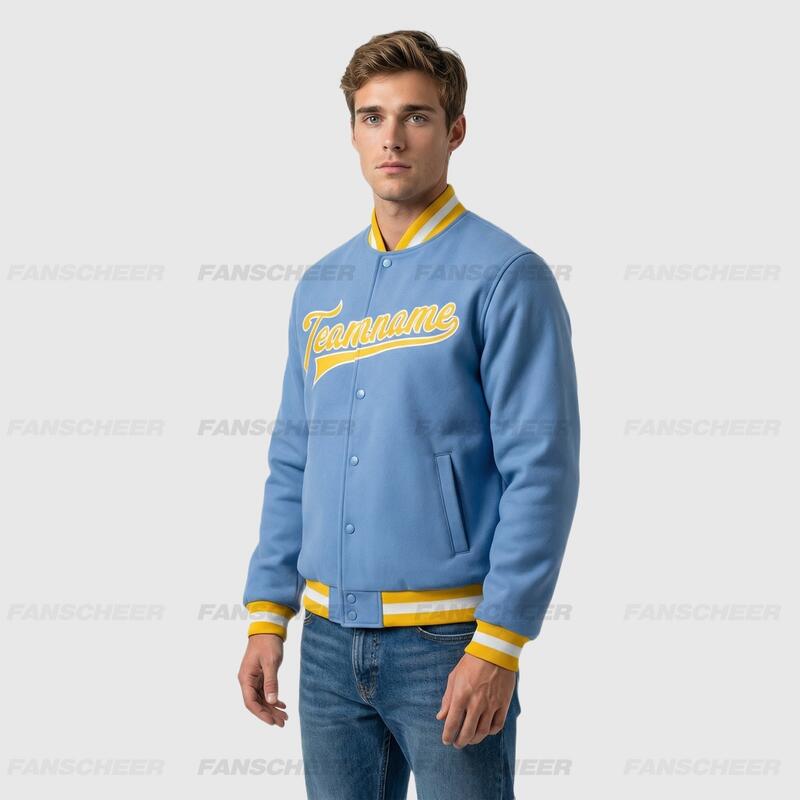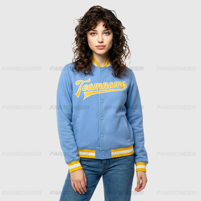 Custom Light Blue Full-Snap Varsity Letterman Jacket Ideal for Everyday Casual Outings