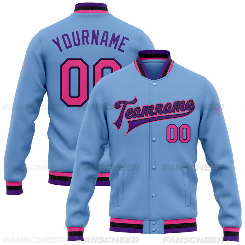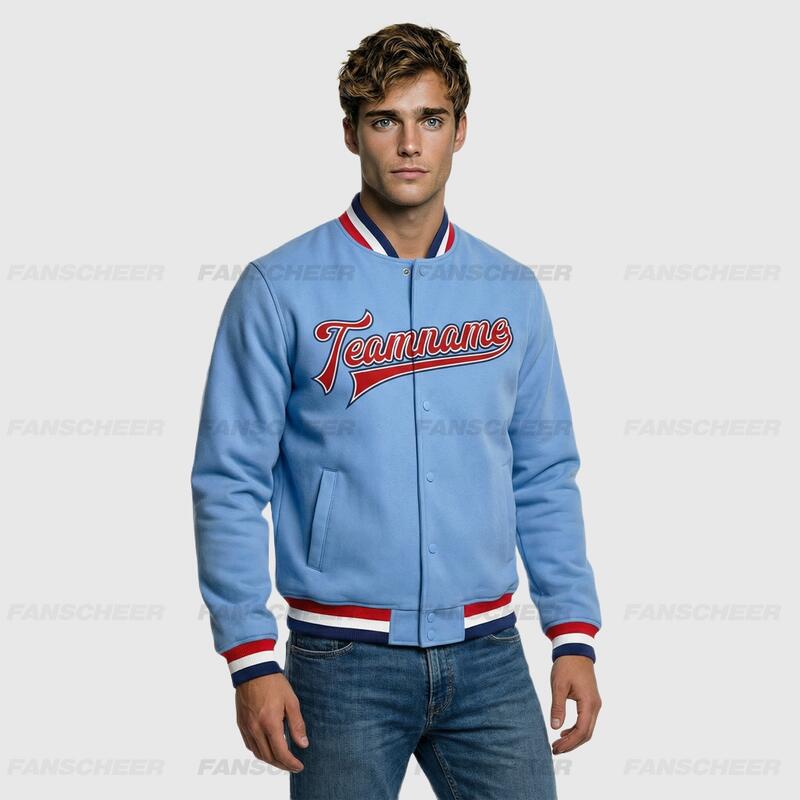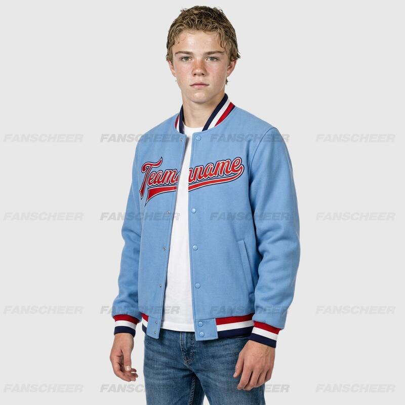 Custom Light Blue Full-Snap Varsity Letterman Jacket Perfect for School Events
