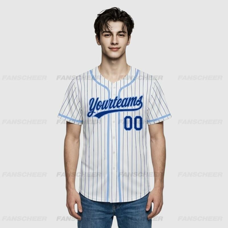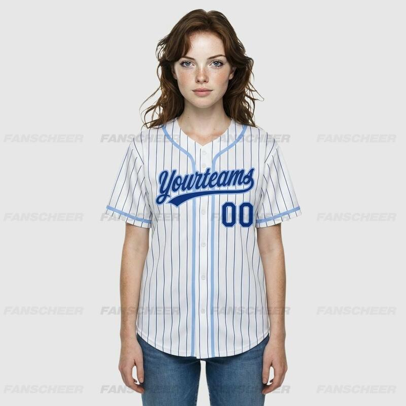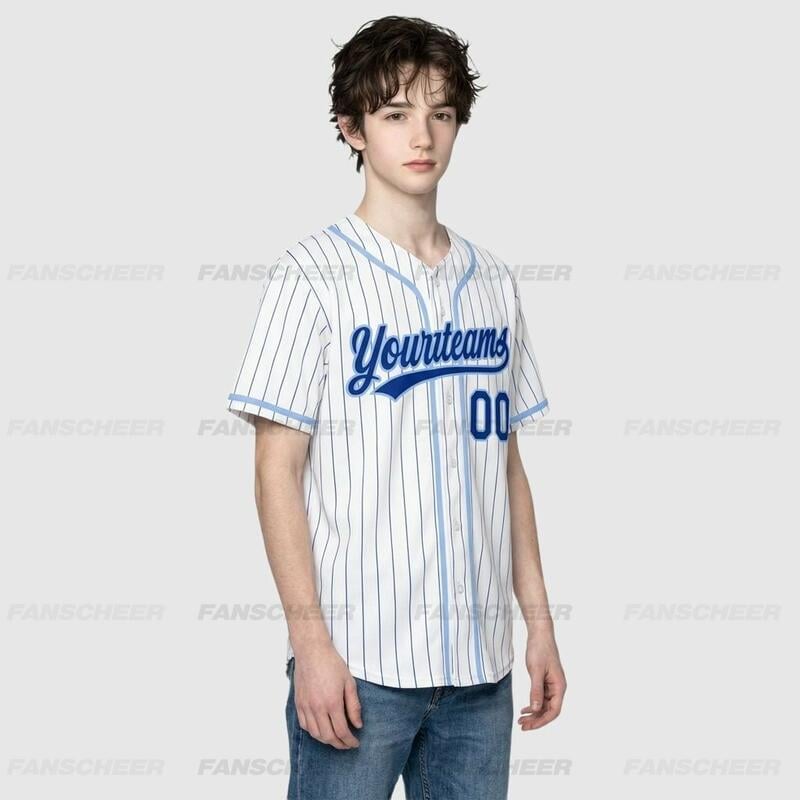 Custom Light Blue Pinstripe Baseball Jersey -Personalized Design for Teams