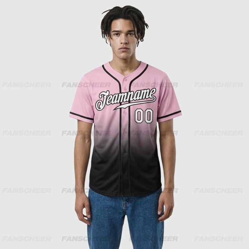 Custom Light Pink Green Fade Fashion Baseball Jersey – Personalized Name, Number, Logo & Bulk Orders