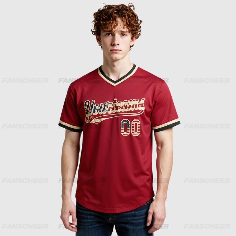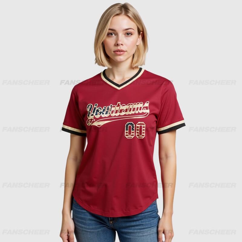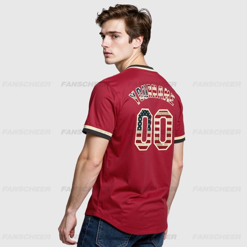 Custom Maroon Vintage USA Flag Authentic Throwback Baseball Jersey for Throwback Baseball Games