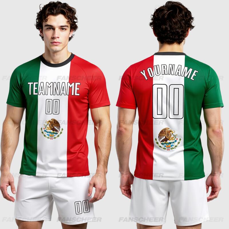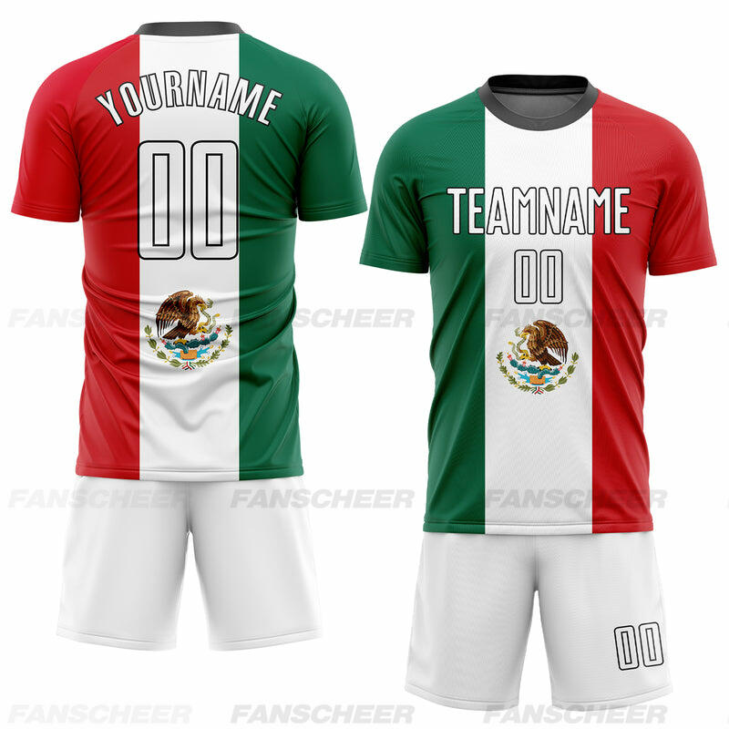 Custom Mexican Flag Soccer Uniform Jersey Kelly Green White Red-Black Sublimation