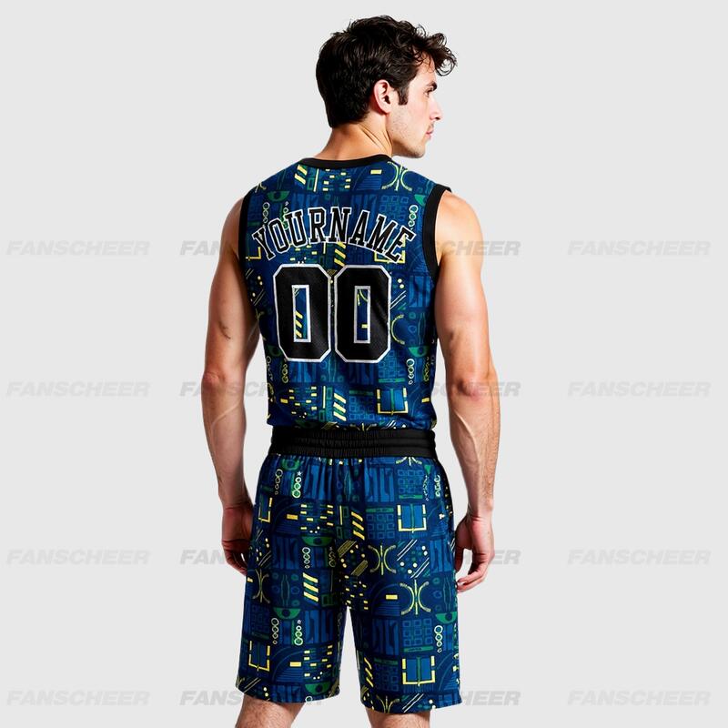 Custom Navy Black-Gold Round Neck Sublimation Basketball Suit Jersey