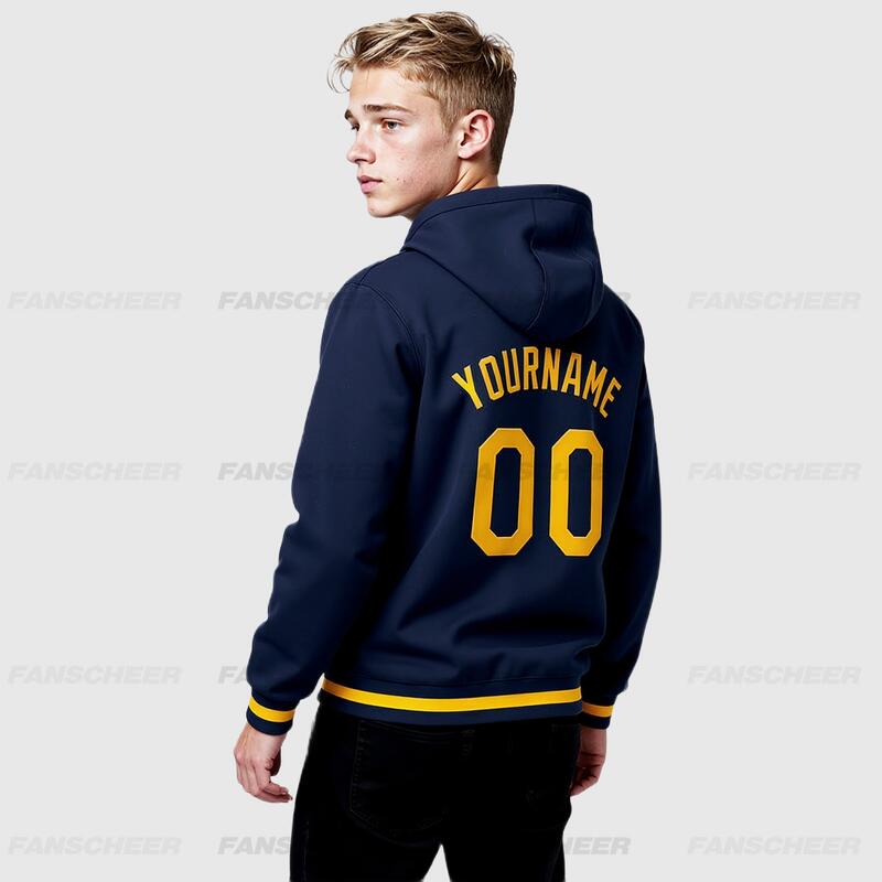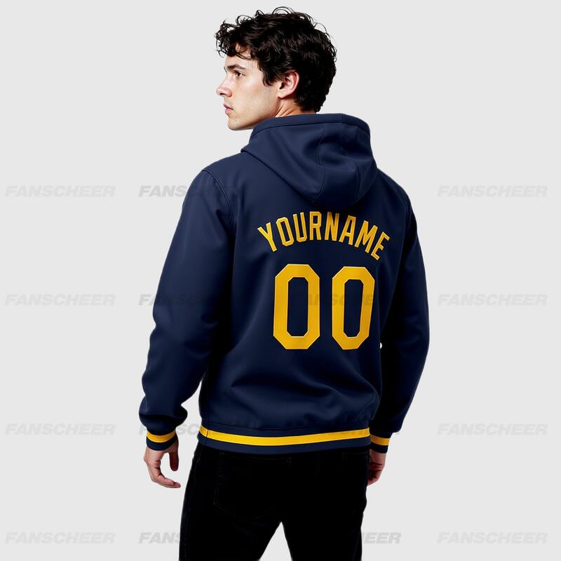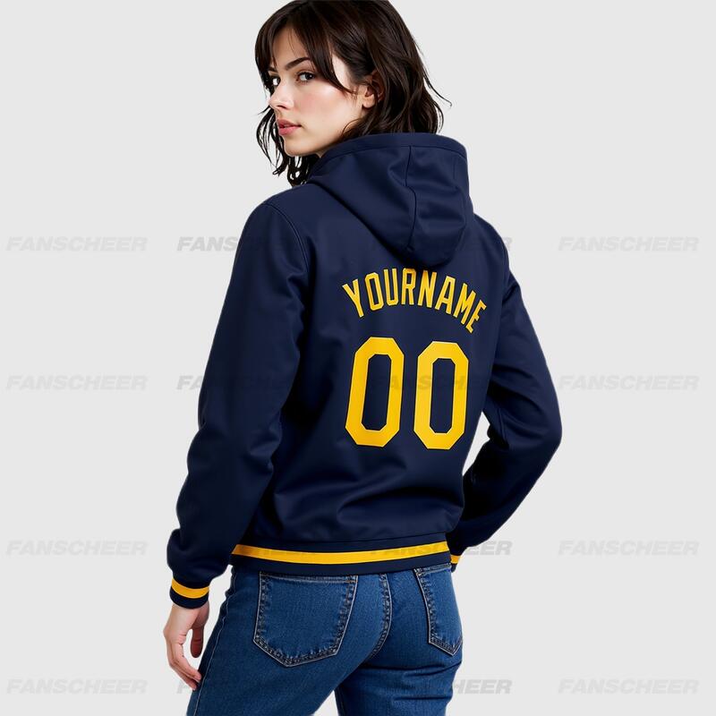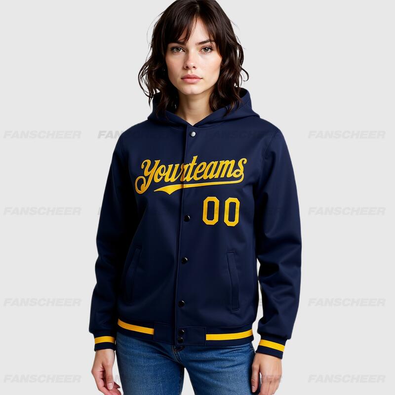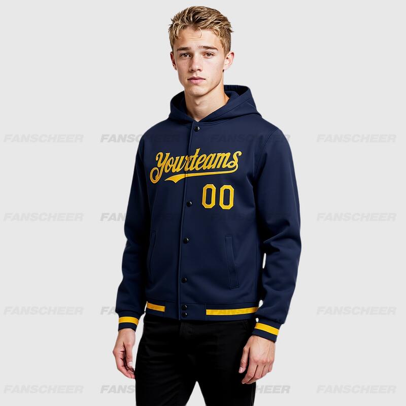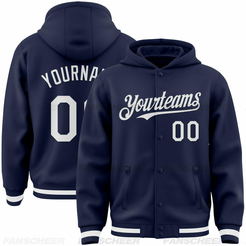 Custom Navy Full-Snap Varsity Letterman Hoodie Jacket for Retro Daily Commute