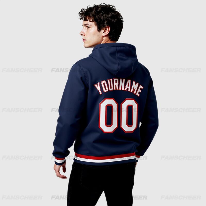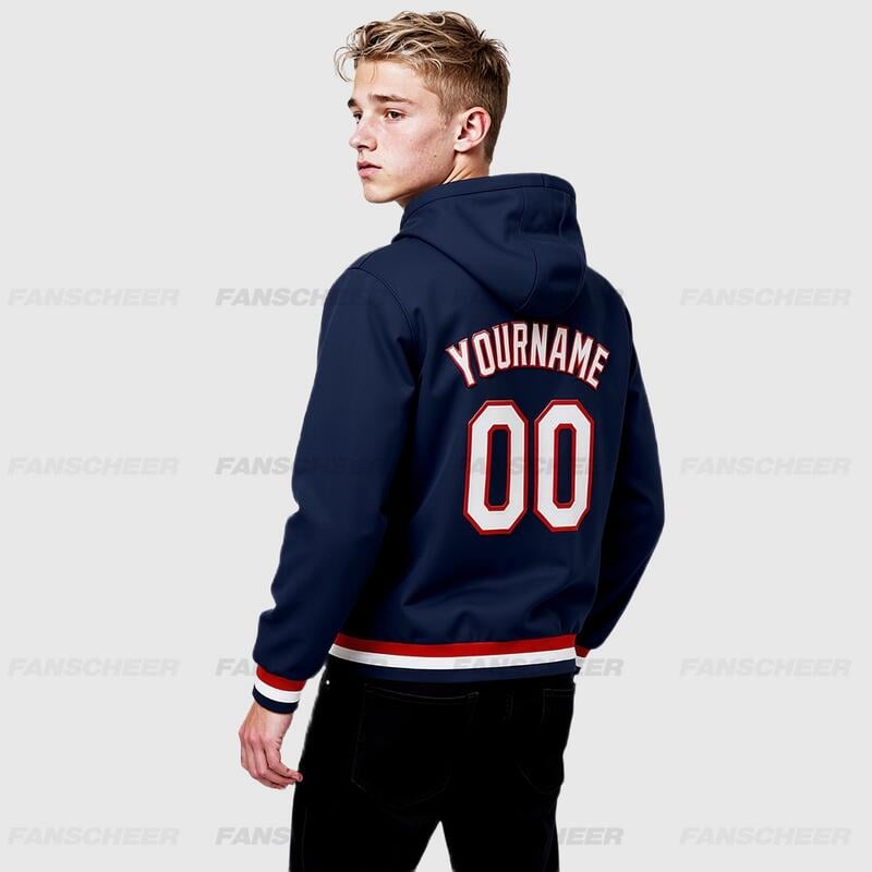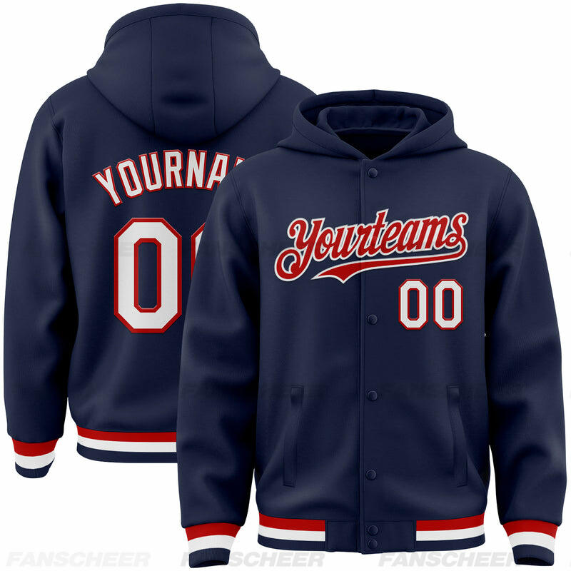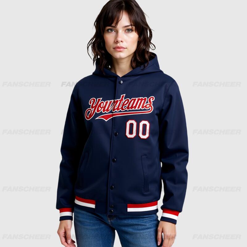 Custom Navy Full-Snap Varsity Letterman Hoodie Jacket for Urban Daily Commute