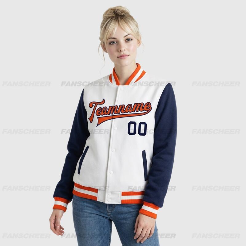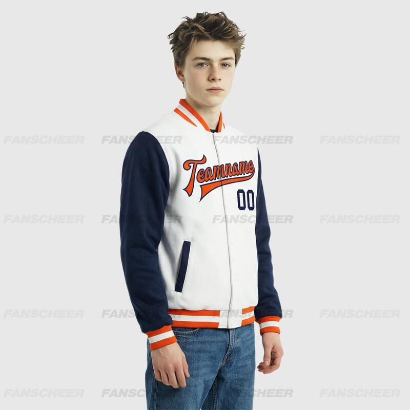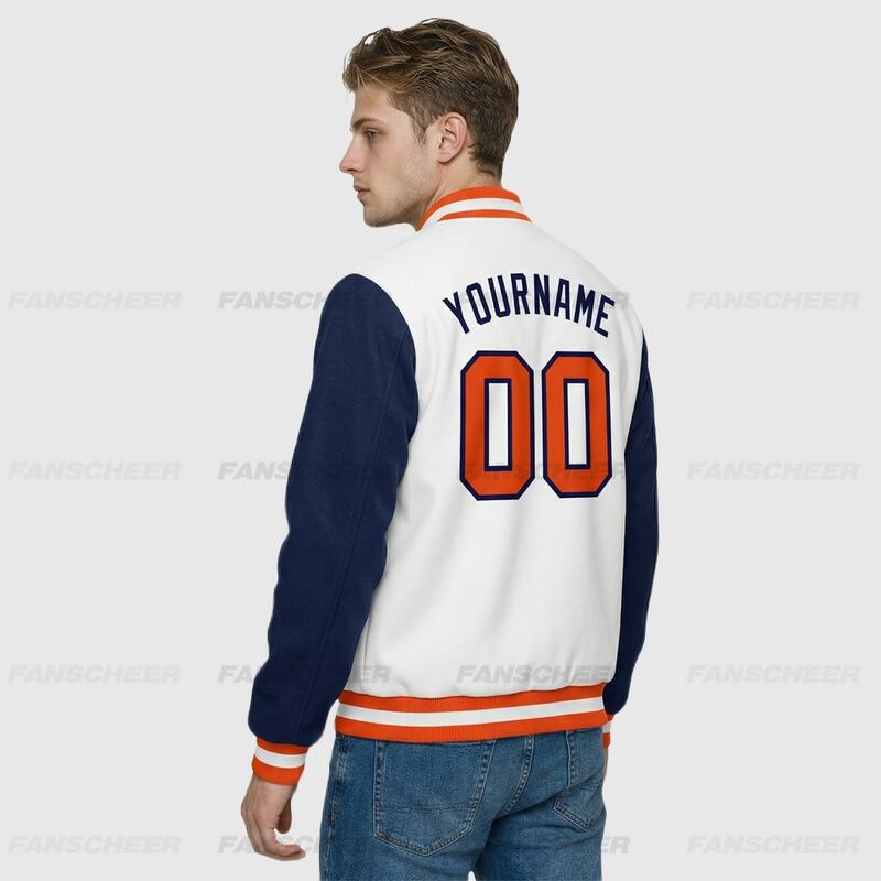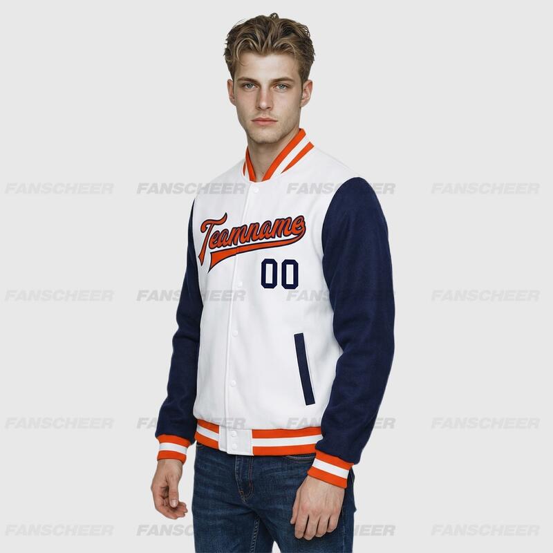 Custom Navy-White Two Tone Full-Snap Letterman Jacket – Ideal for Campus Classes and Club Activities