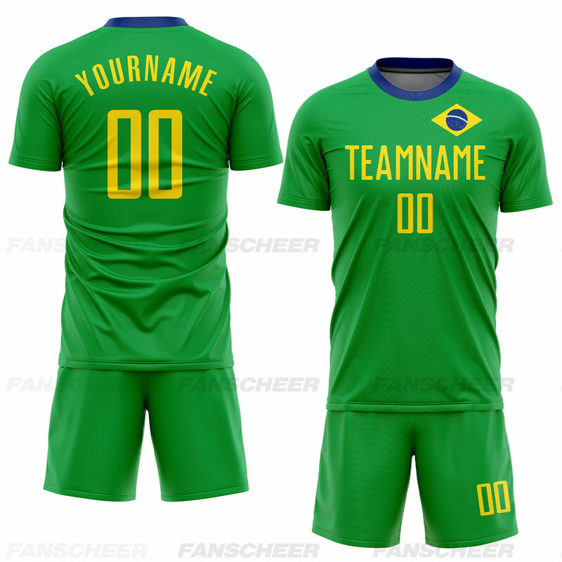 Custom Neon Green Gold-Royal Sublimation Brazilian Flag Soccer Uniform Jersey