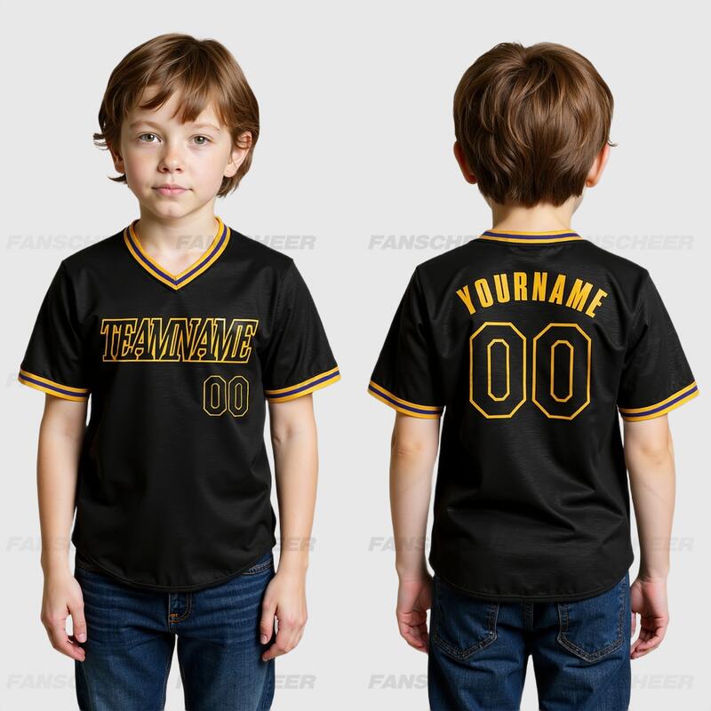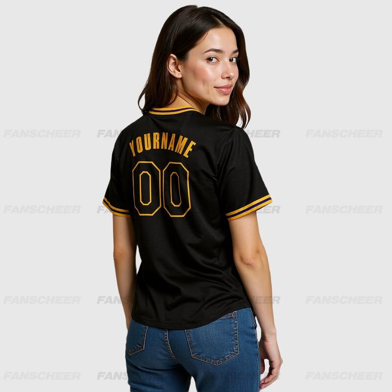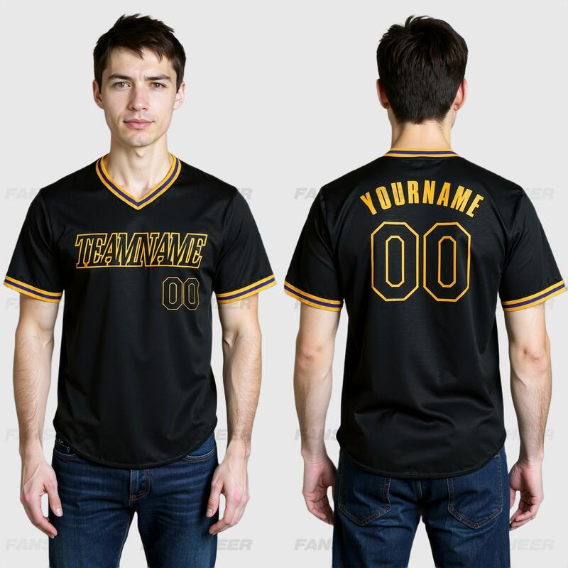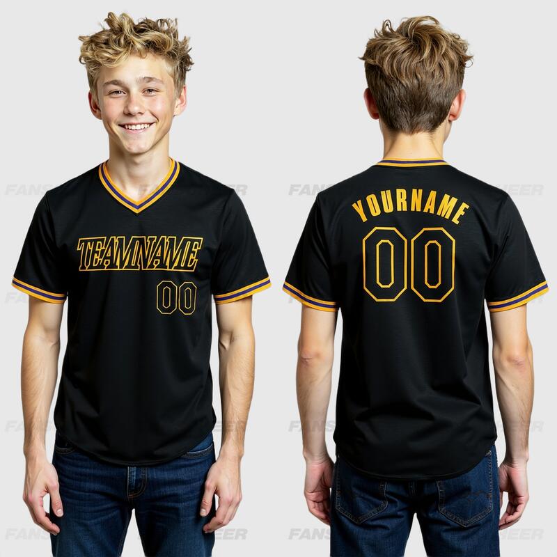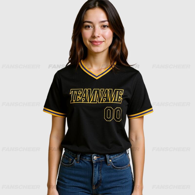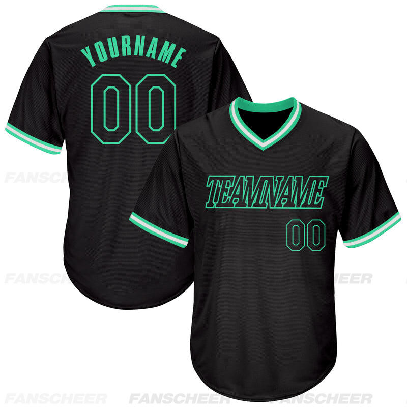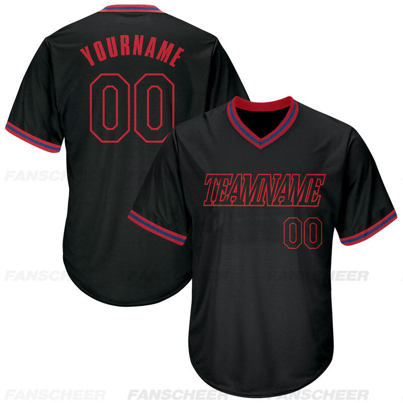 Custom Number and Team Logo Black Baseball Jersey with V-Neck Ribbed Perfect for Sports Events