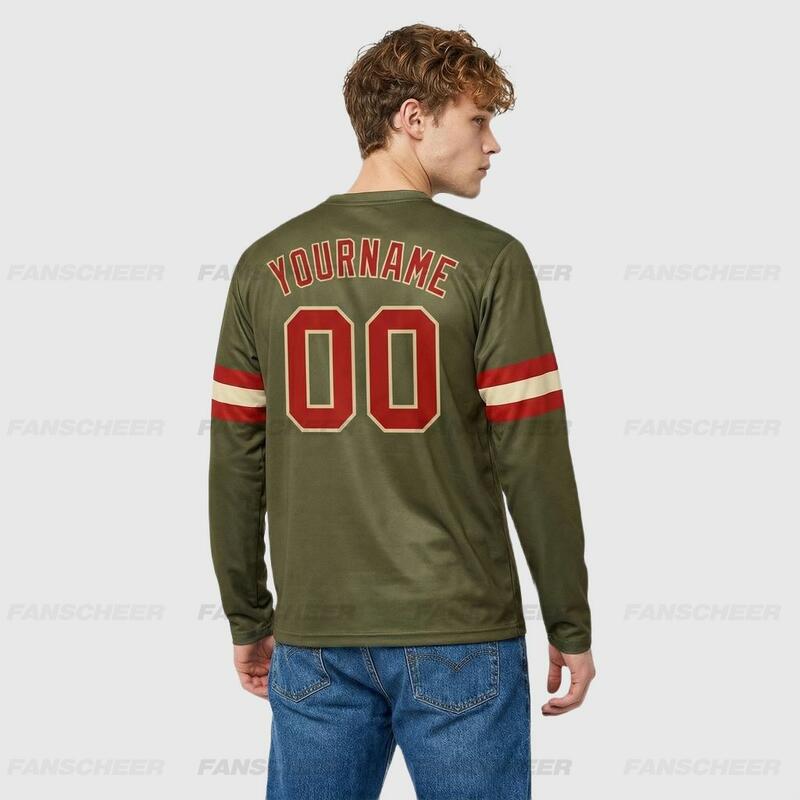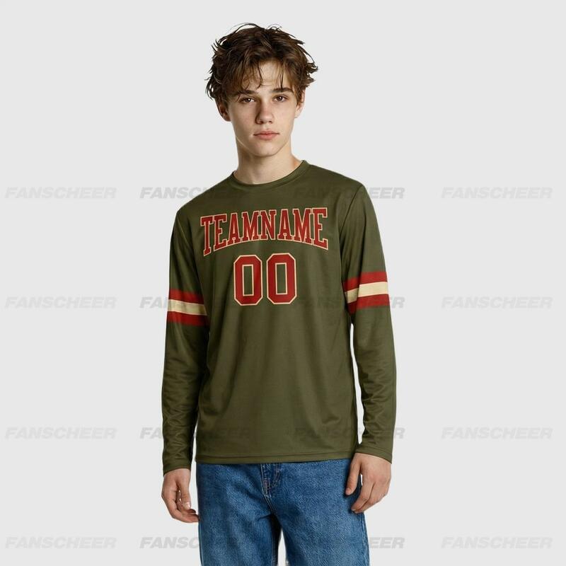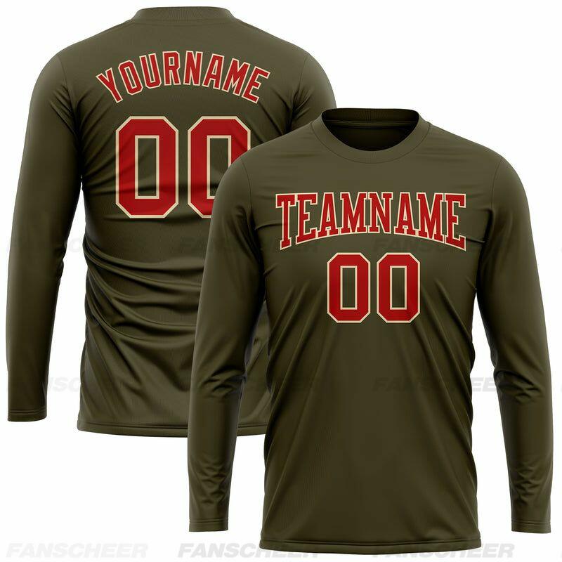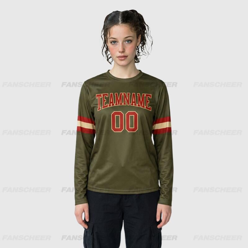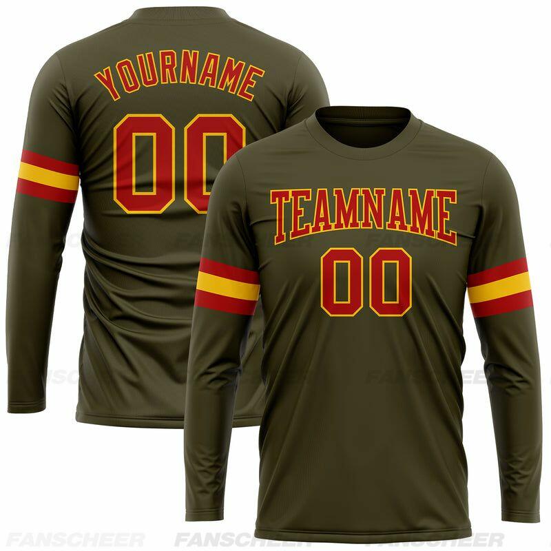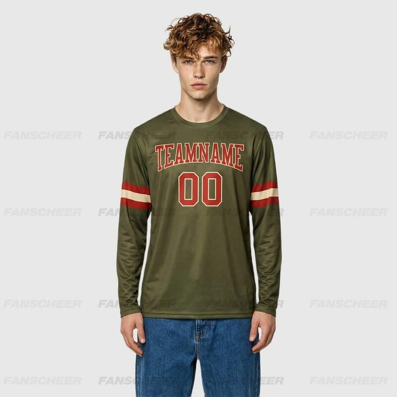 Custom Olive-Red Long Sleeve Performance T-Shirt