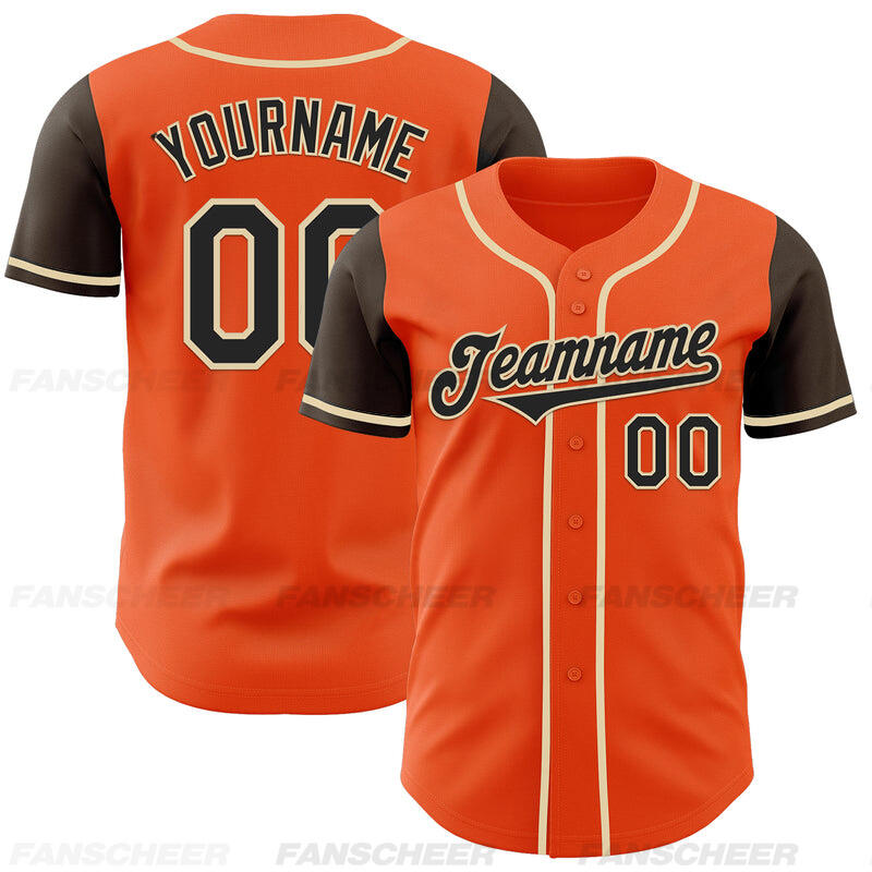 Custom Orange Brown Authentic Two Tone Baseball Jersey with Personalized Number and Logo for Games Practices and Fan Events
