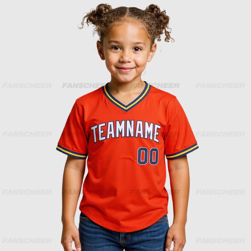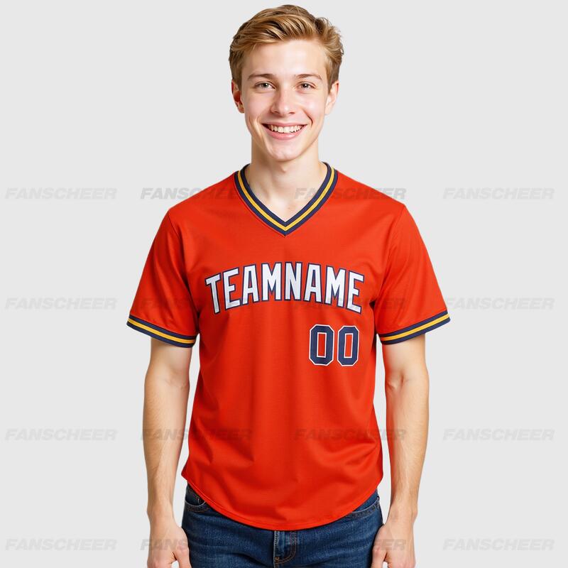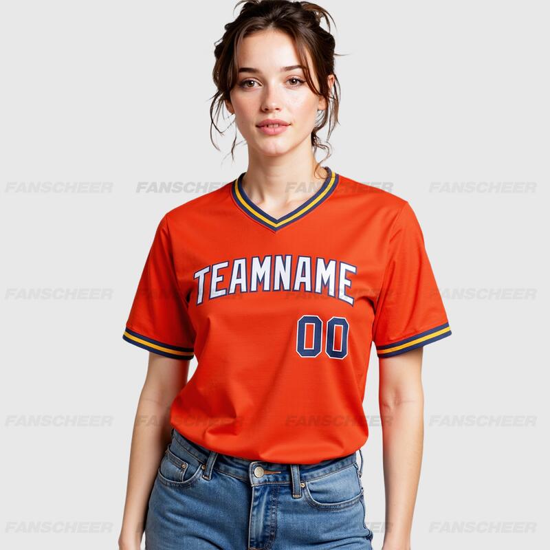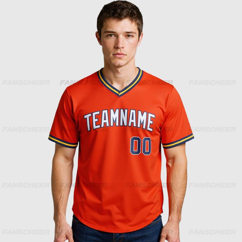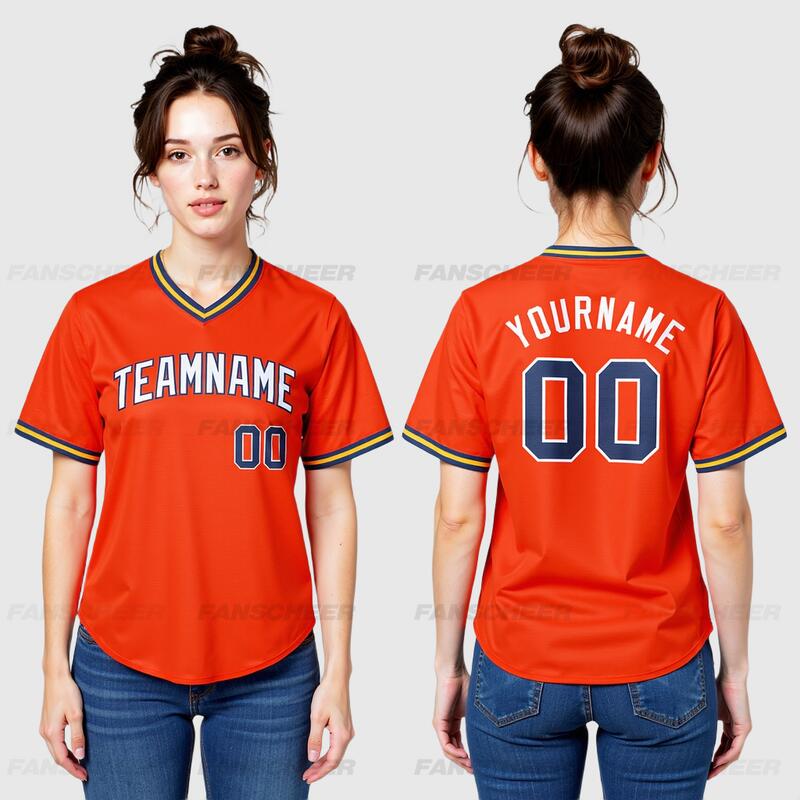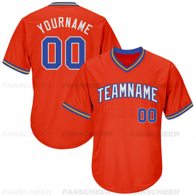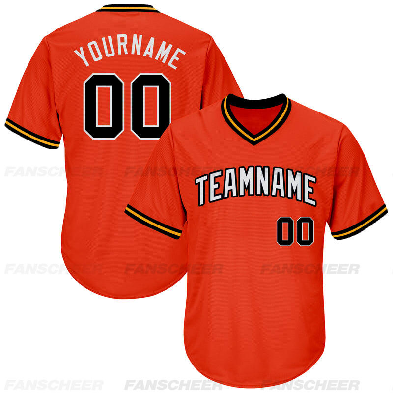 Custom Orange V-Neck Baseball Jersey with Personalized Number and Team Logo Great for Your Ultimate Game
