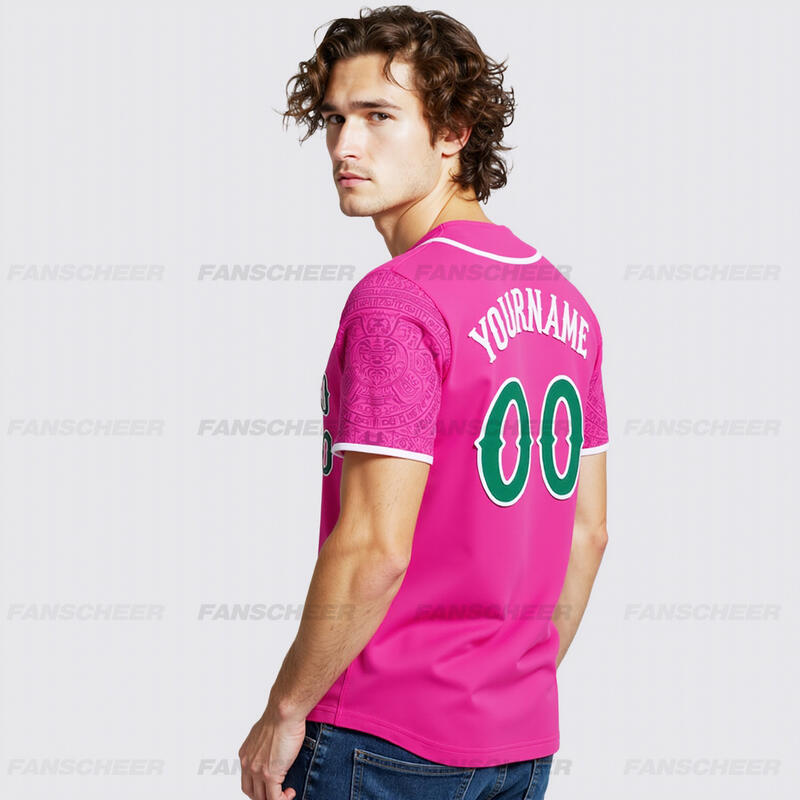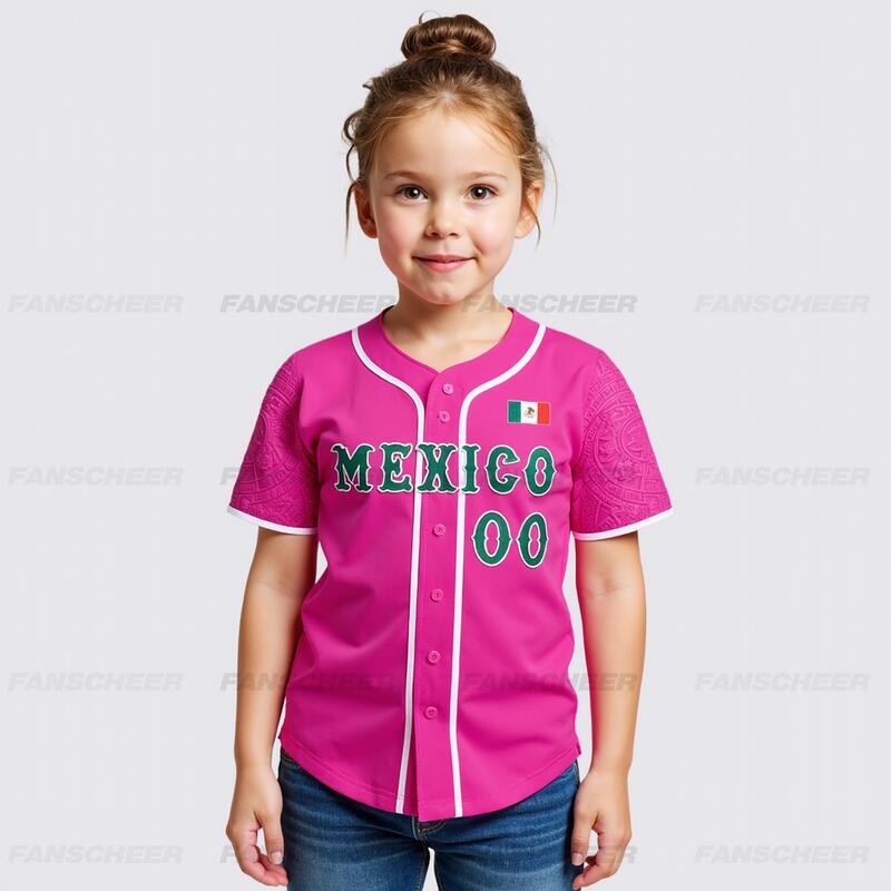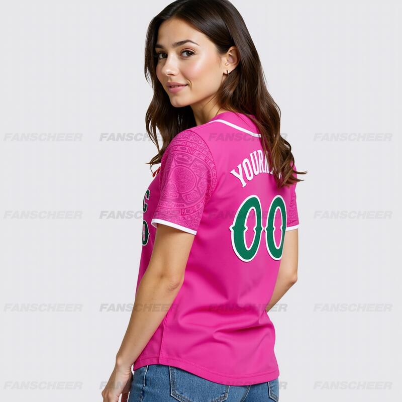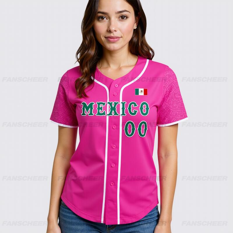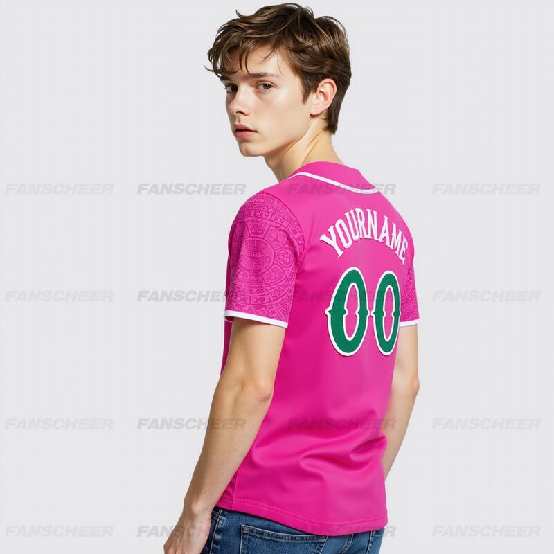 Custom Pink 3D Mexican Flag Authentic Baseball Jersey Perfect for Games Cinco de Mayo Celebrations and Fan Meetups