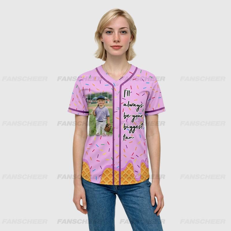 Custom Pink Baseball Jersey Gift For Mom & Baseball Lover - Personalized Photo Name and Number