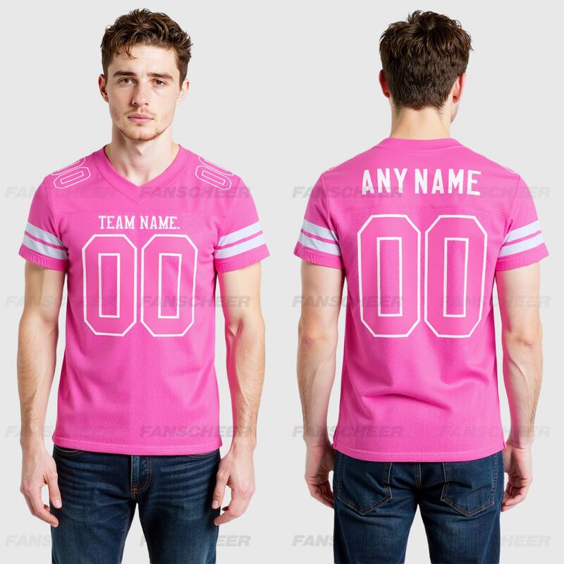 Custom Pink Football Jersey – Embroidered Name and Number, Soft Stretch Fabric