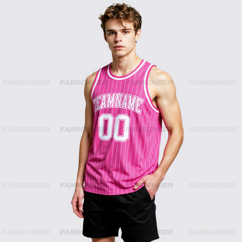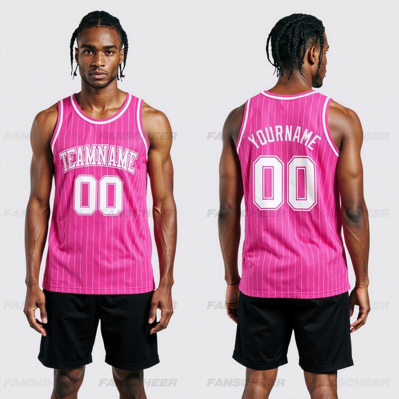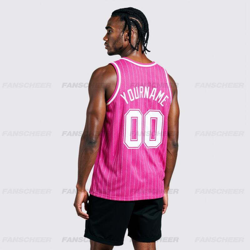 Custom Pinstripe Authentic Pink Basketball Jersey - Classic Stripes, Premium Fabric, Team Logo