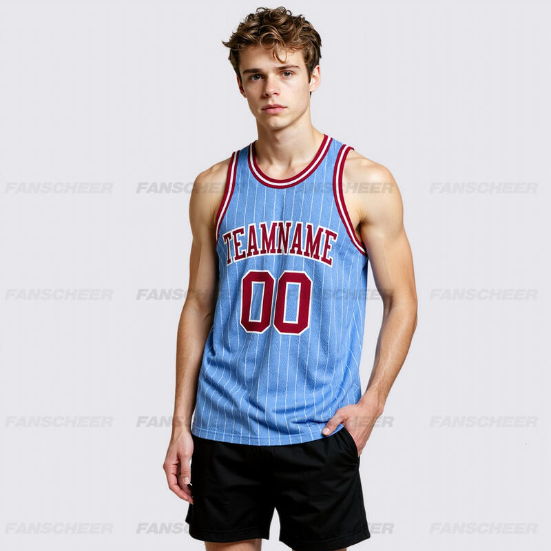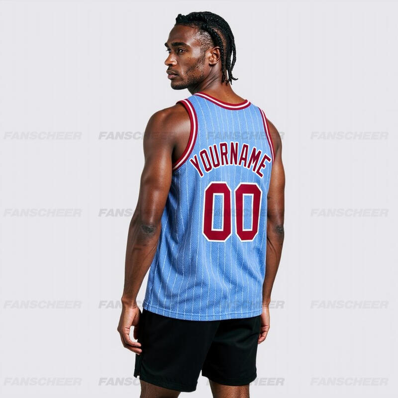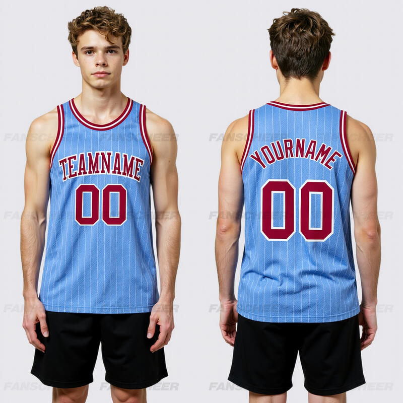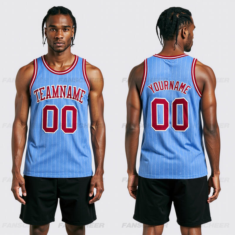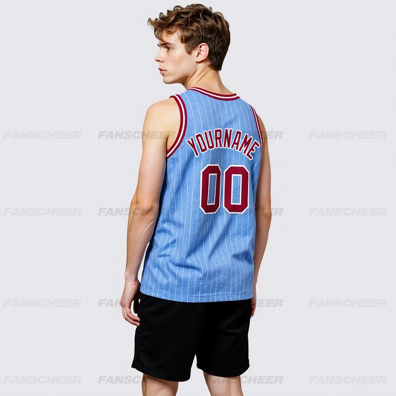 Custom Pinstripe Light Blue Basketball Jersey - Authentic Craft, Crisp Stripes, Comfort Fit