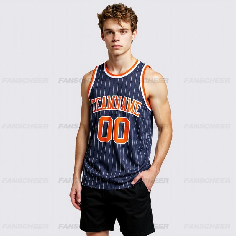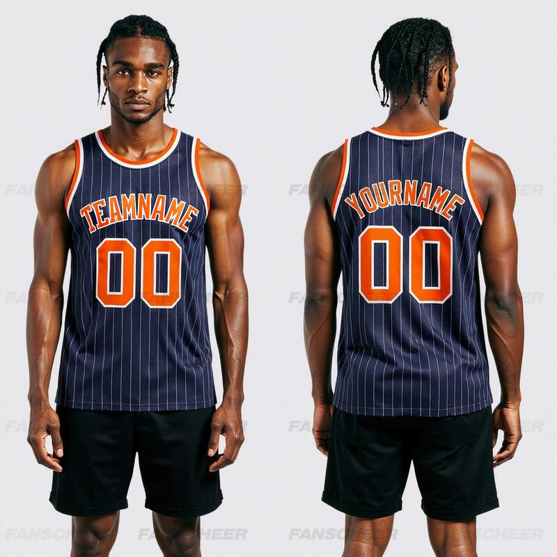 Custom Pinstripe Navy Basketball Jersey - Authentic Quality, Sleek Stripes, Player Name Print