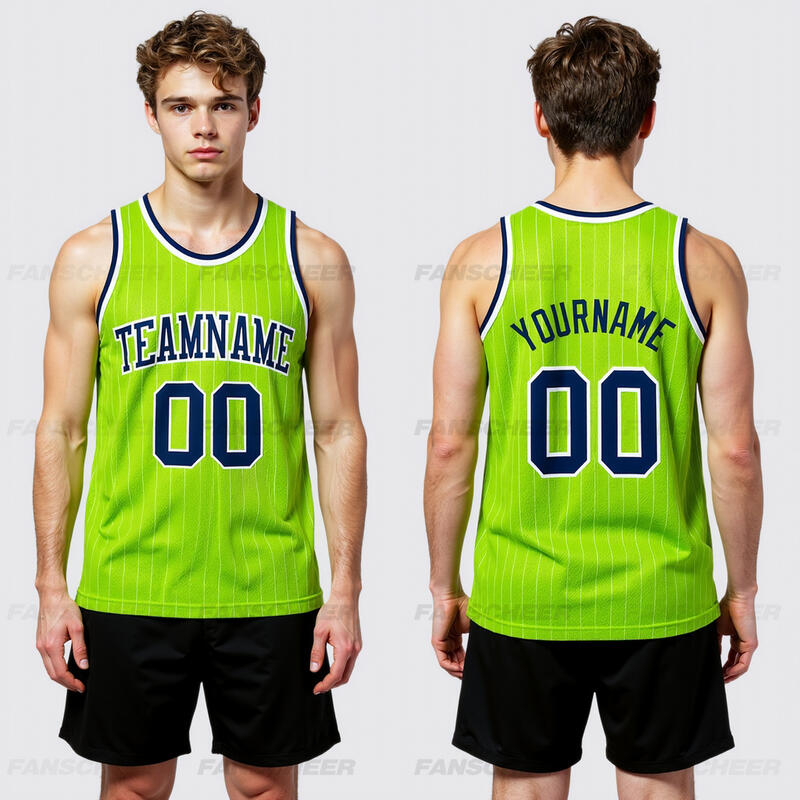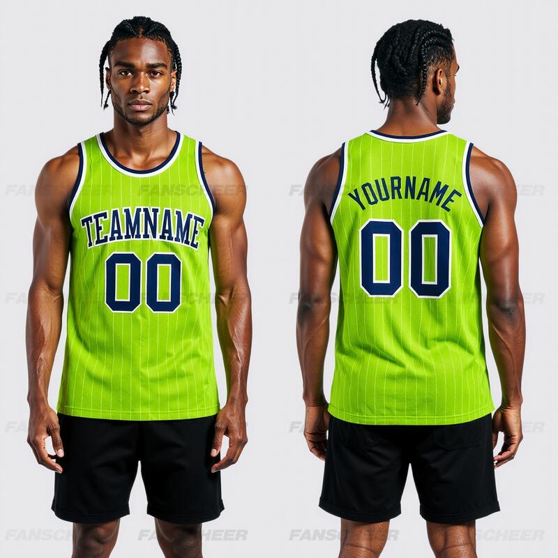 Custom Pinstripe Neon Green Basketball Jersey - Authentic Craft, Crisp Stripes, Comfort Fit