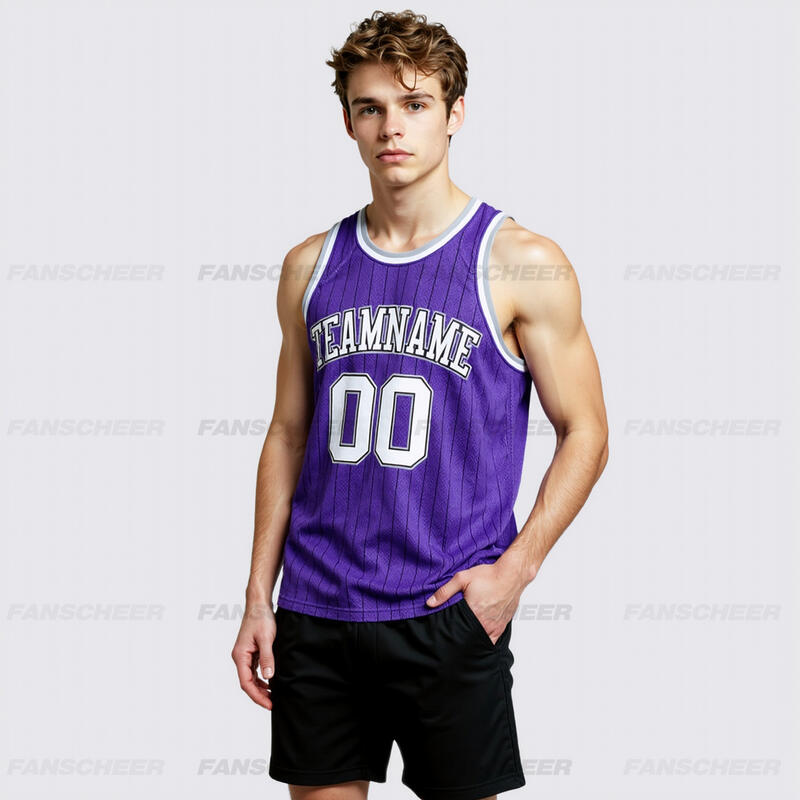 Custom Pinstripe Purple Basketball Jersey - Authentic Quality, Sleek Stripes, Player Name Print